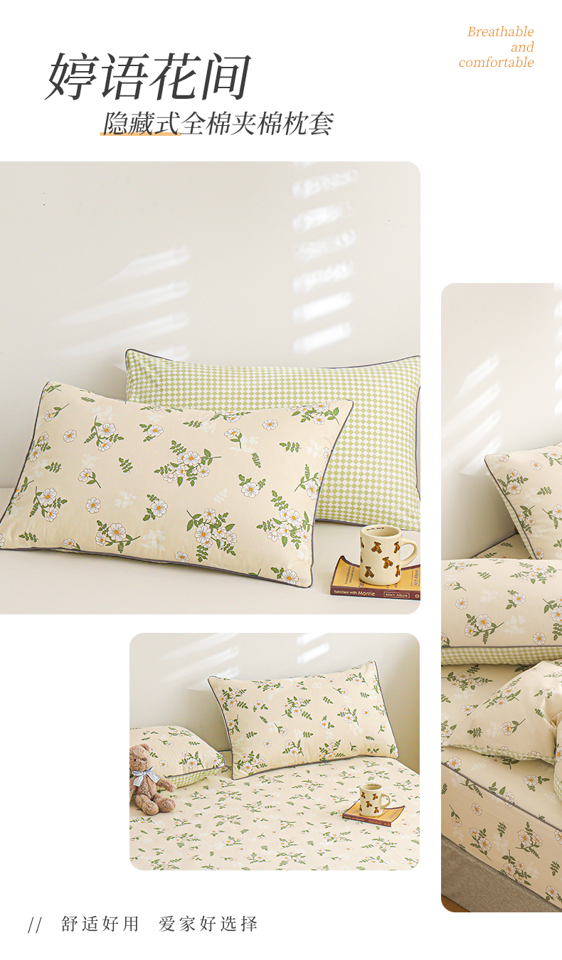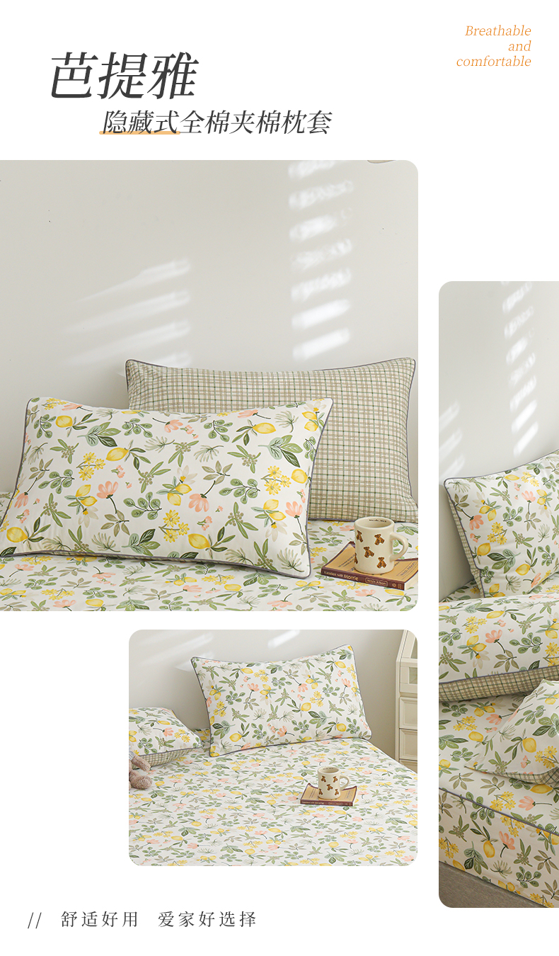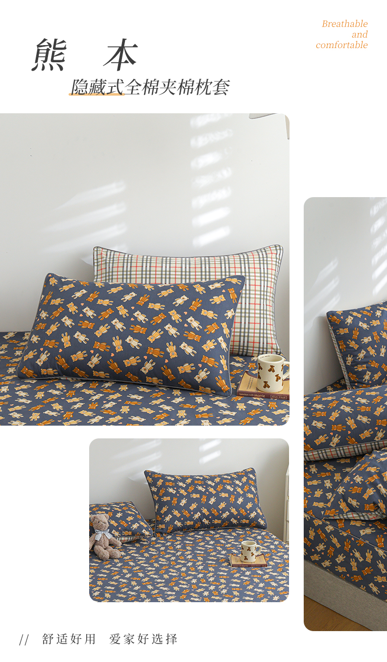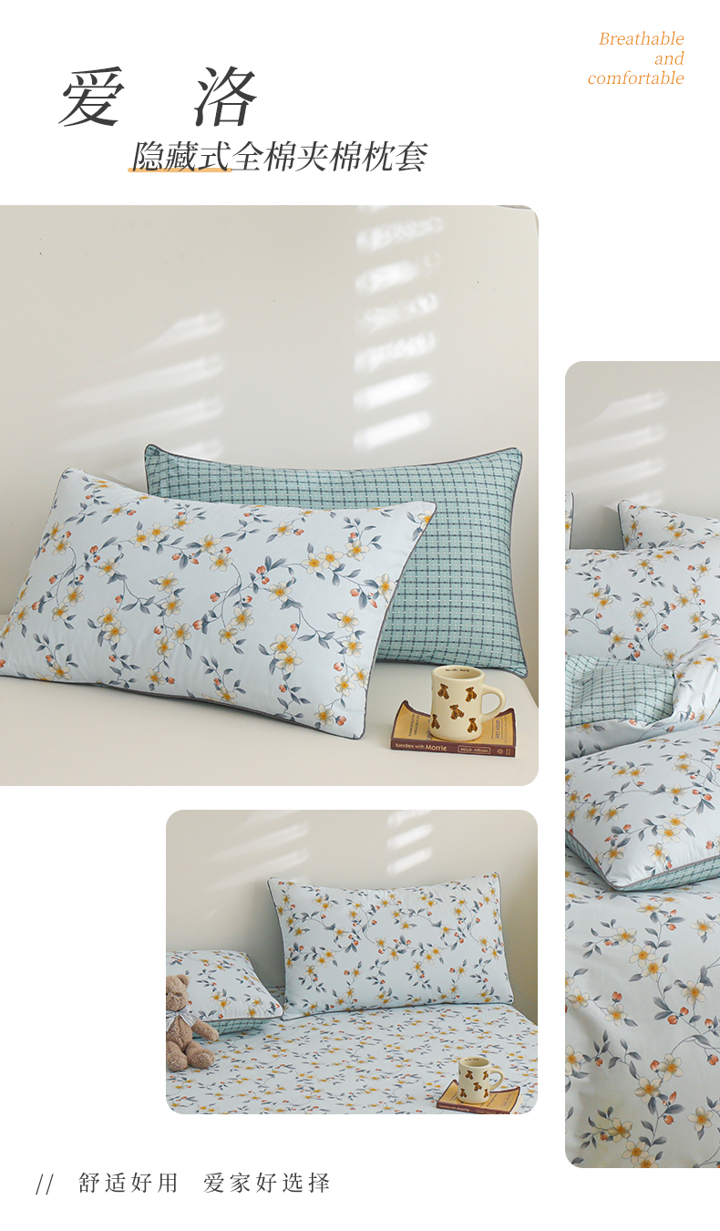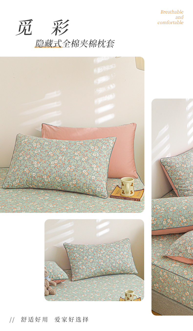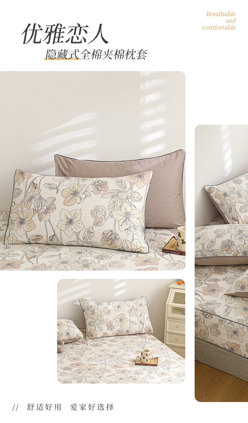 元元家居 隐藏式全棉夹棉四件套床笠款 被套床笠枕套都带夹棉