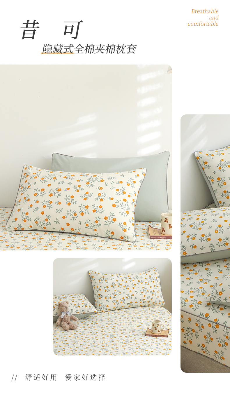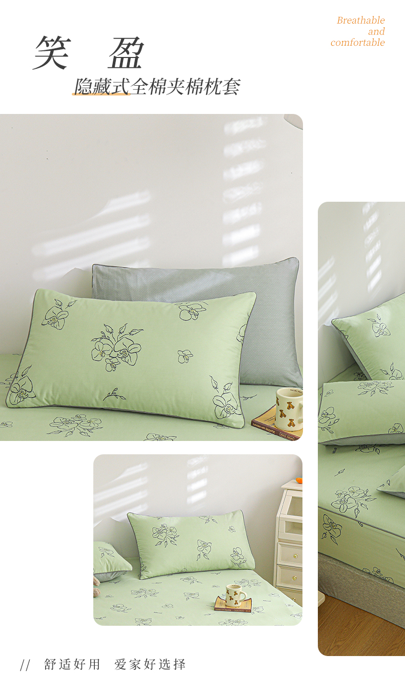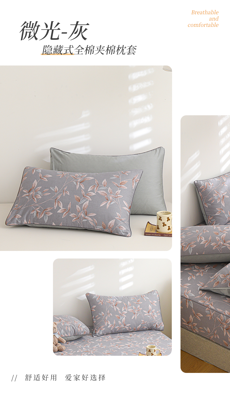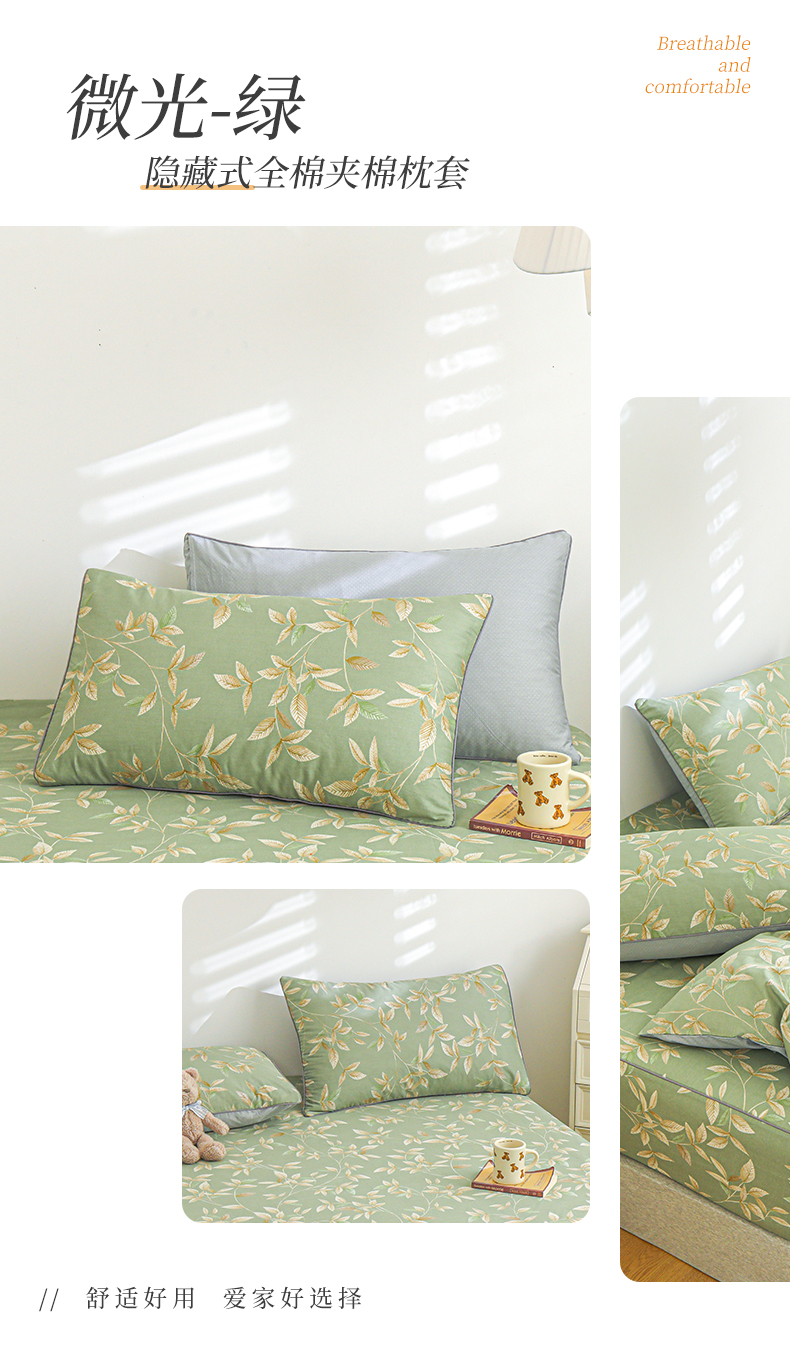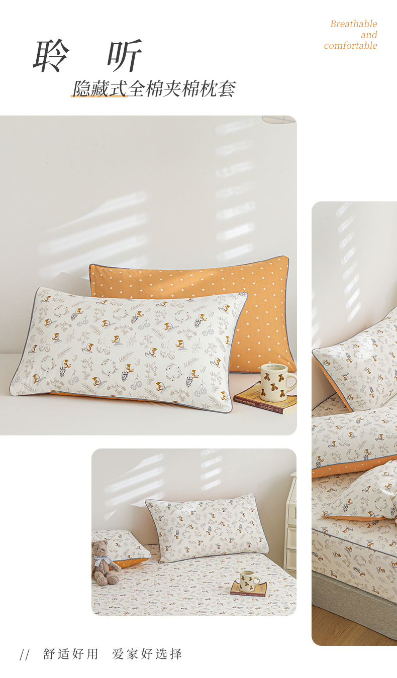 元元家居 隐藏式全棉夹棉四件套床笠款 被套床笠枕套都带夹棉