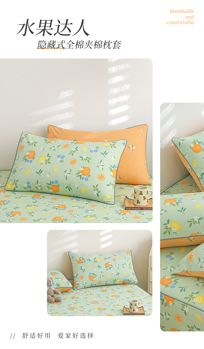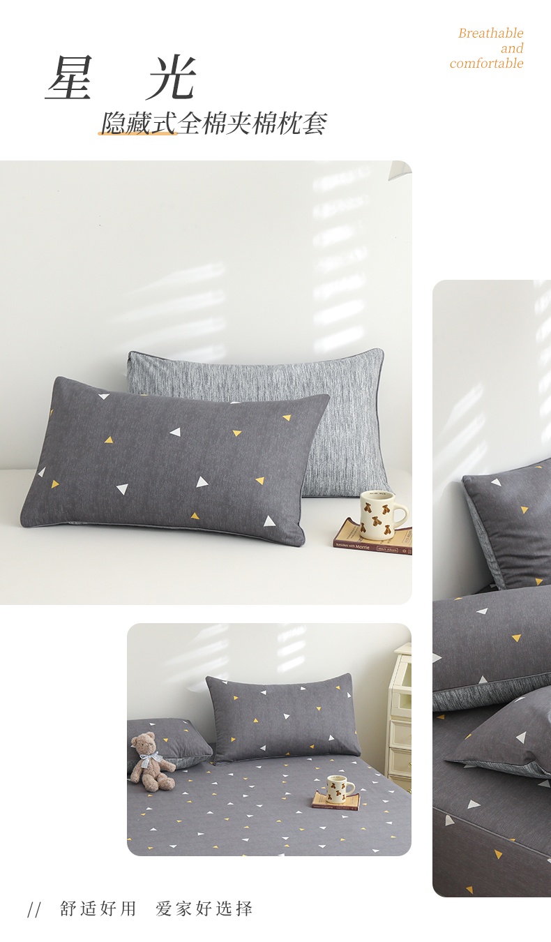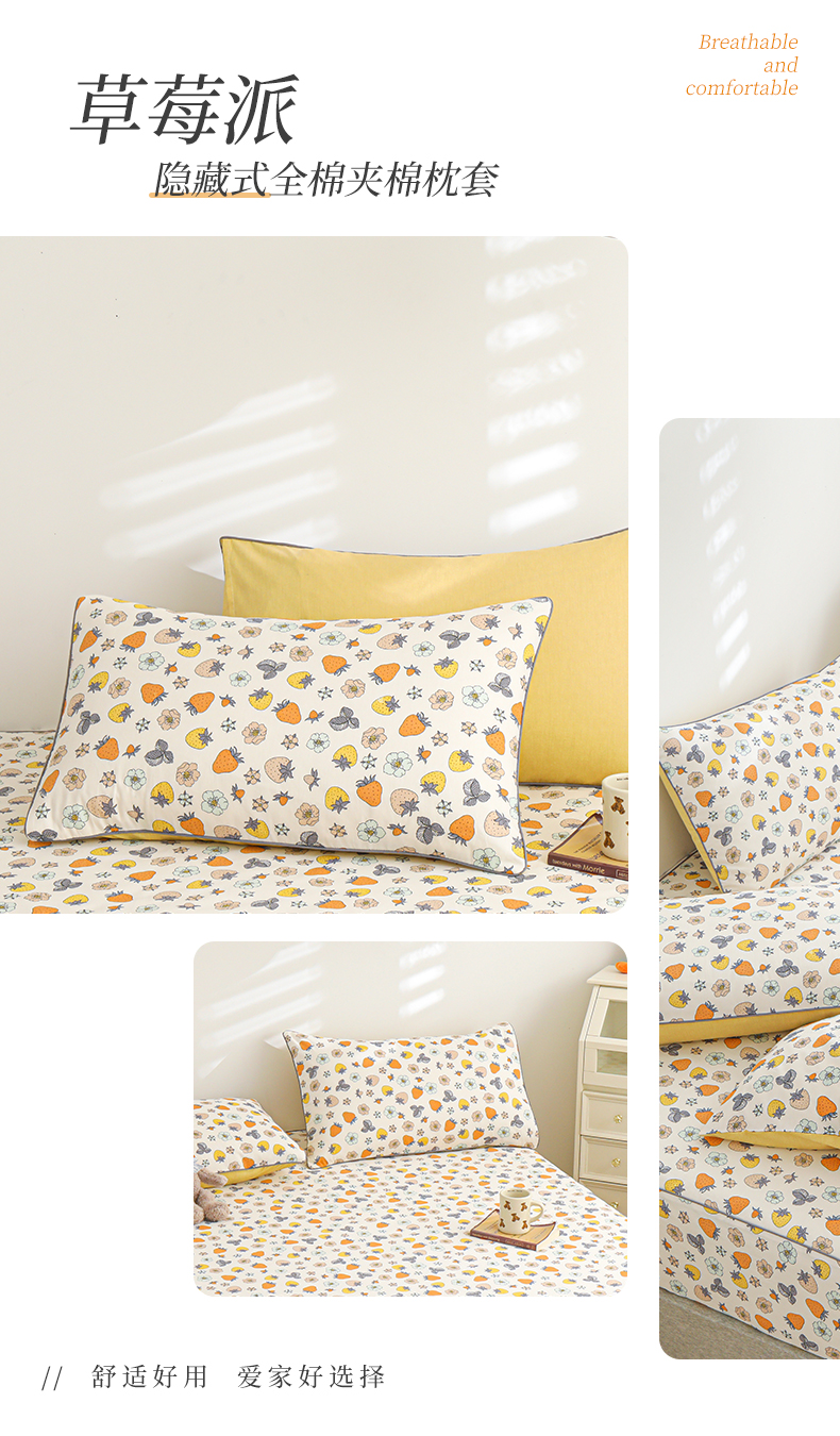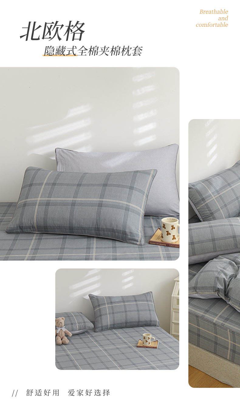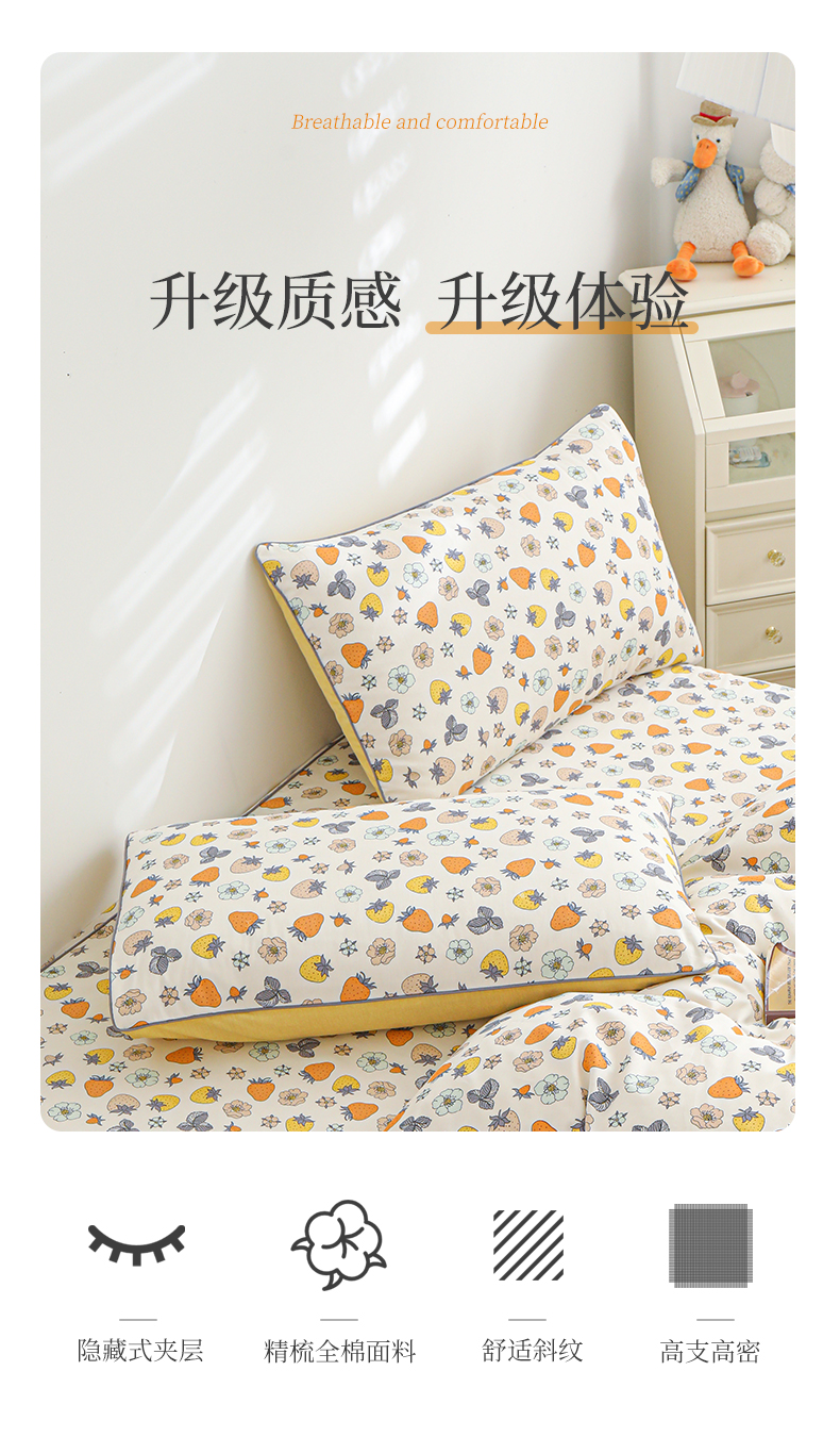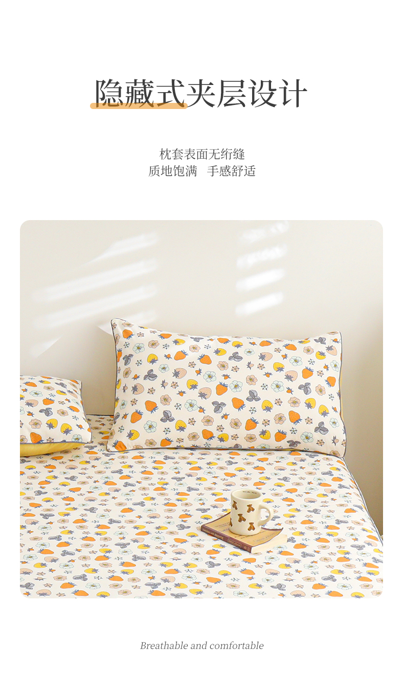 元元家居 隐藏式全棉夹棉四件套床笠款 被套床笠枕套都带夹棉