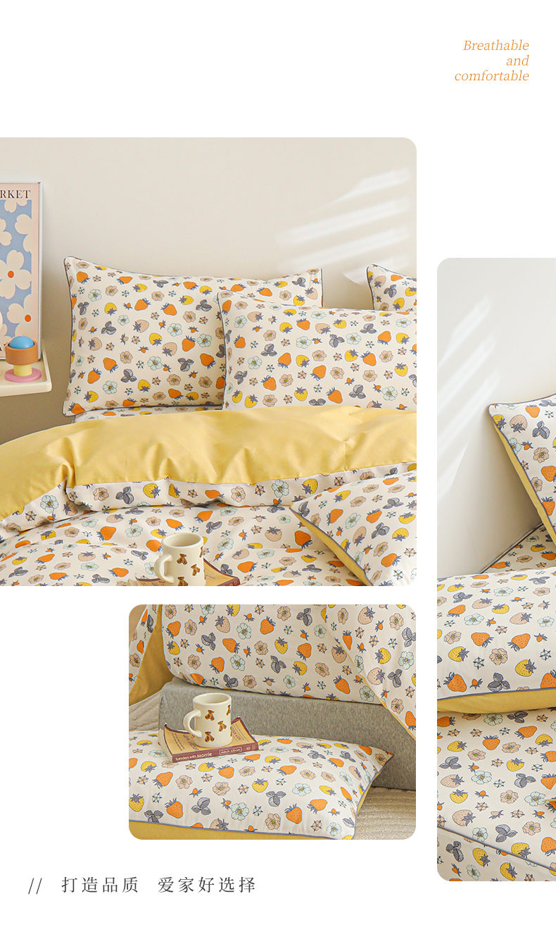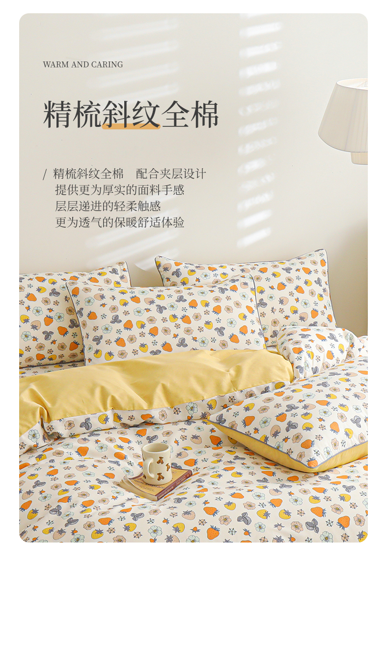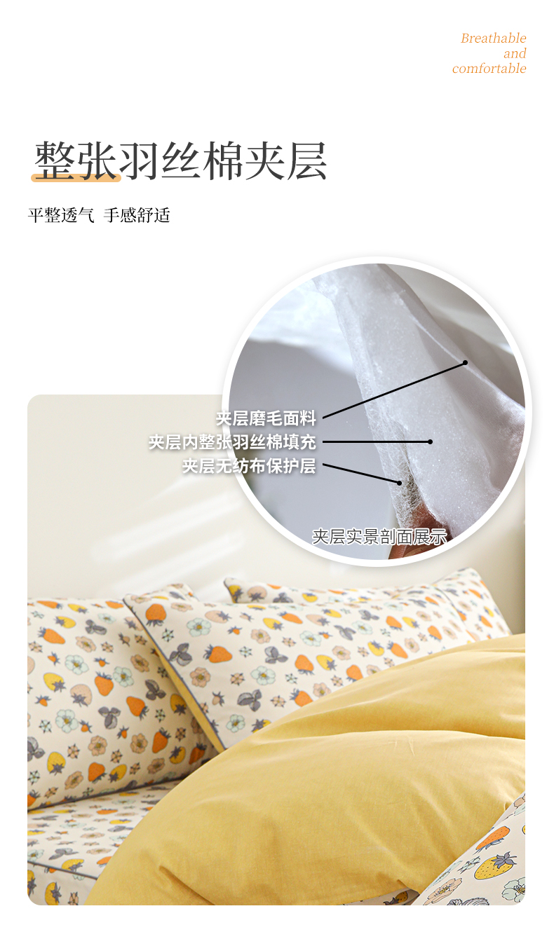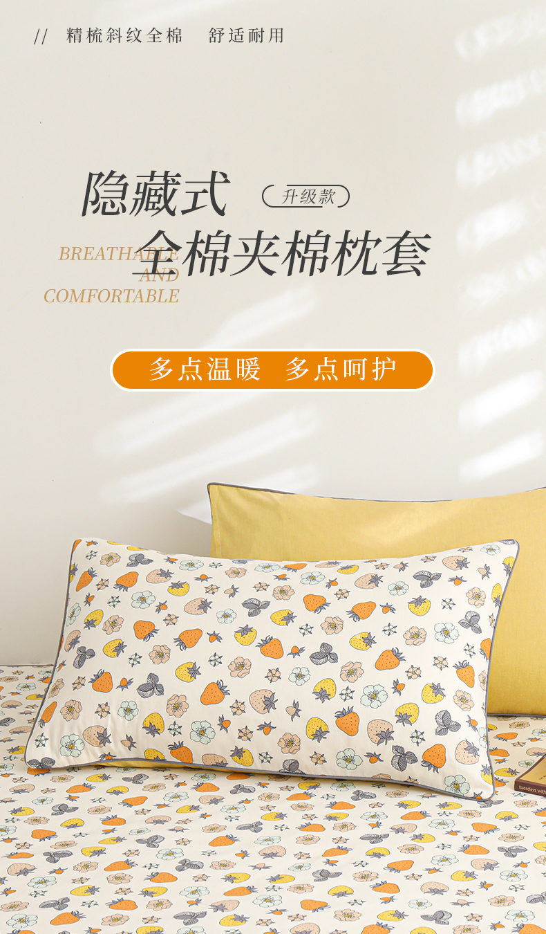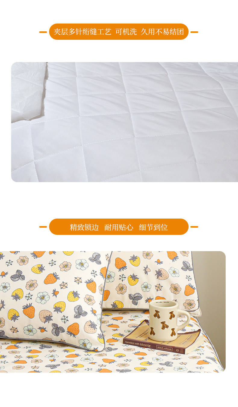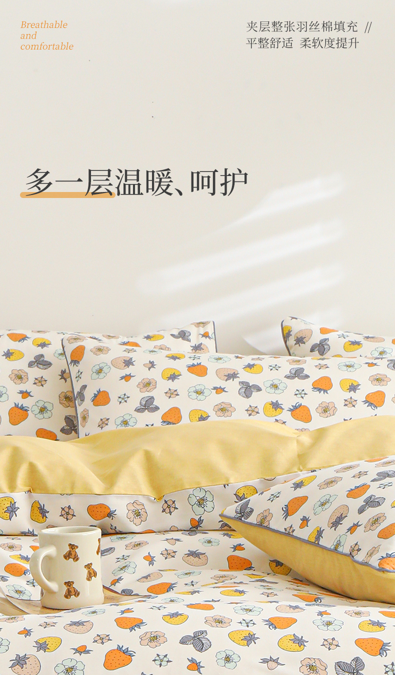 元元家居 隐藏式全棉夹棉四件套床笠款 被套床笠枕套都带夹棉