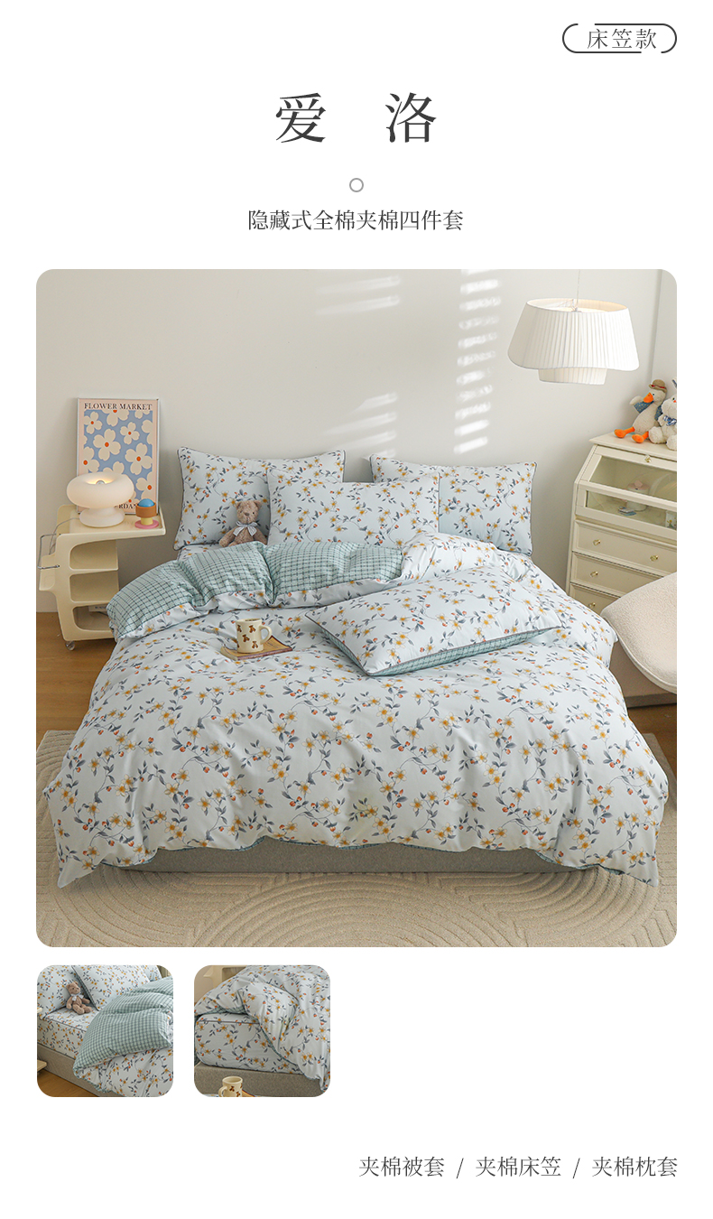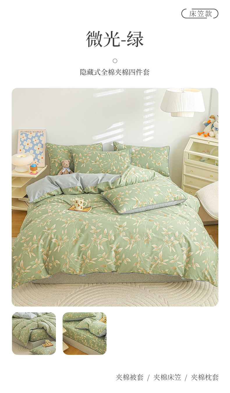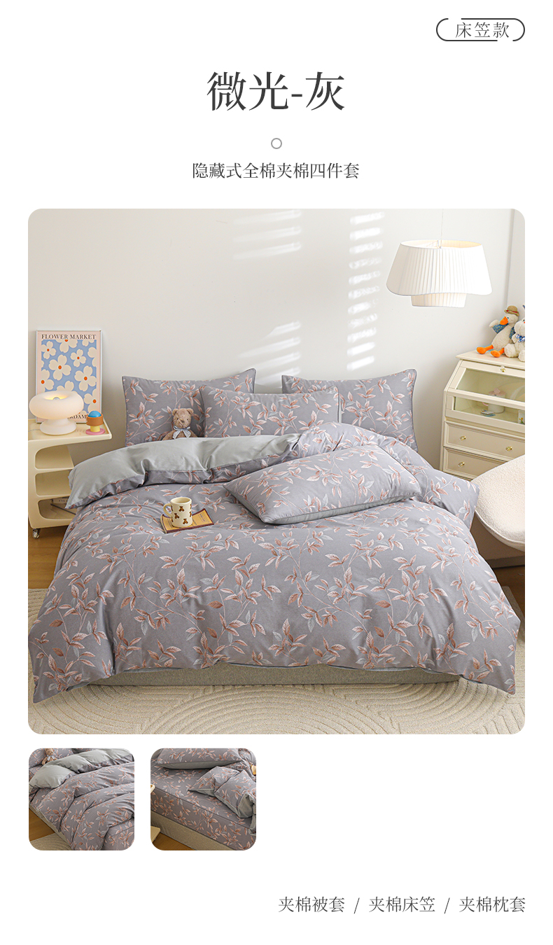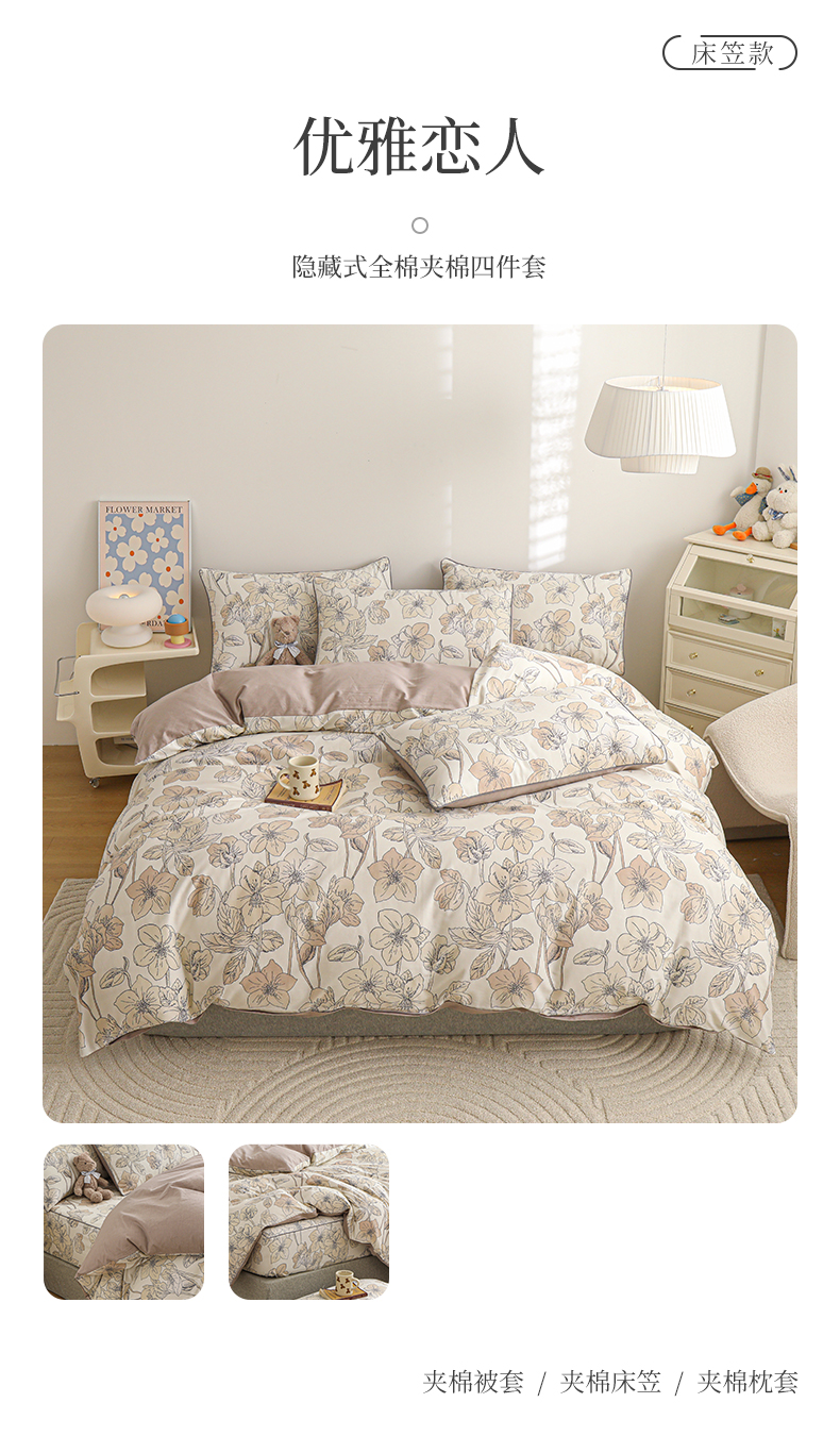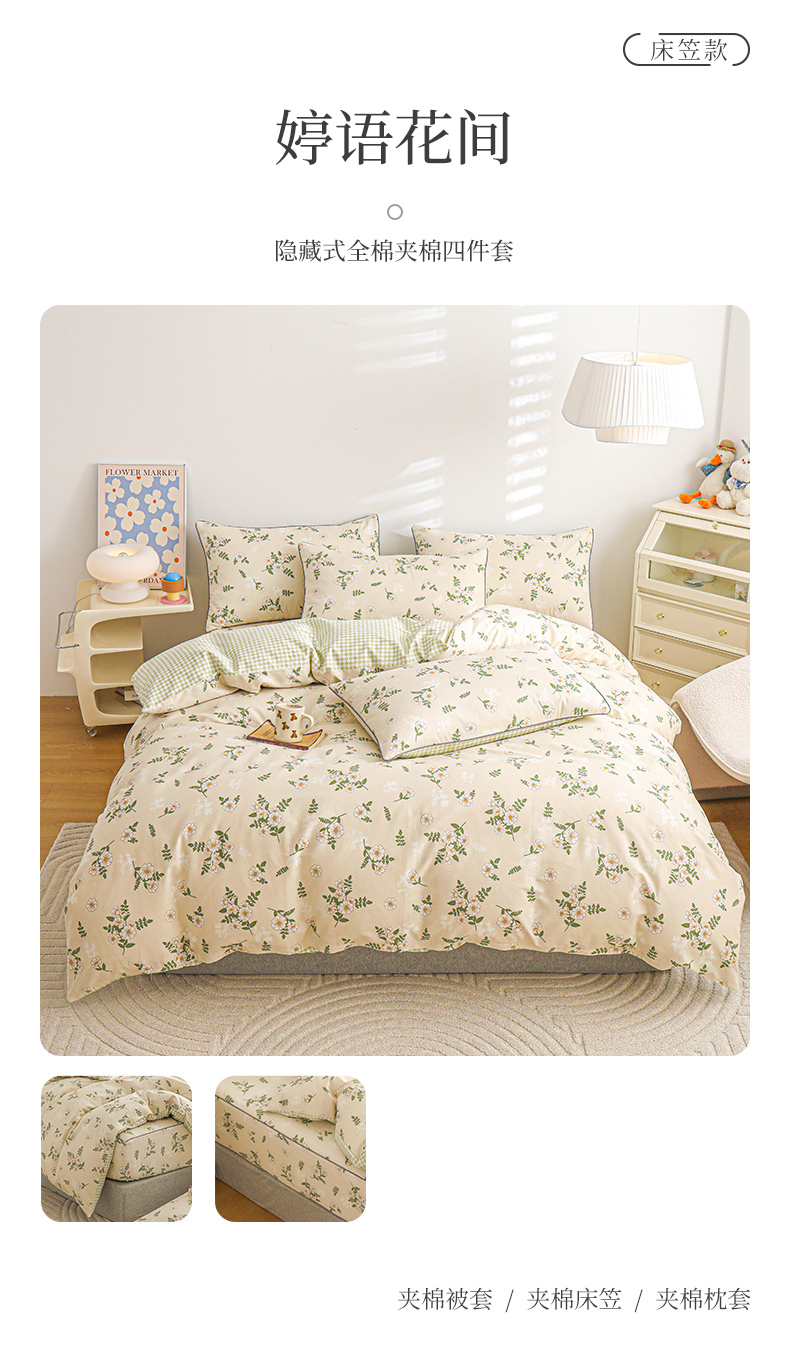 产品分类:隐藏式全棉夹棉四件套床笠款