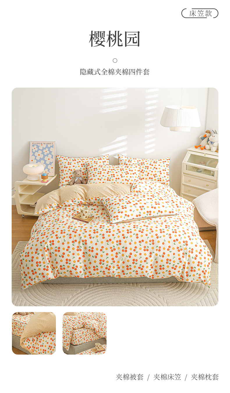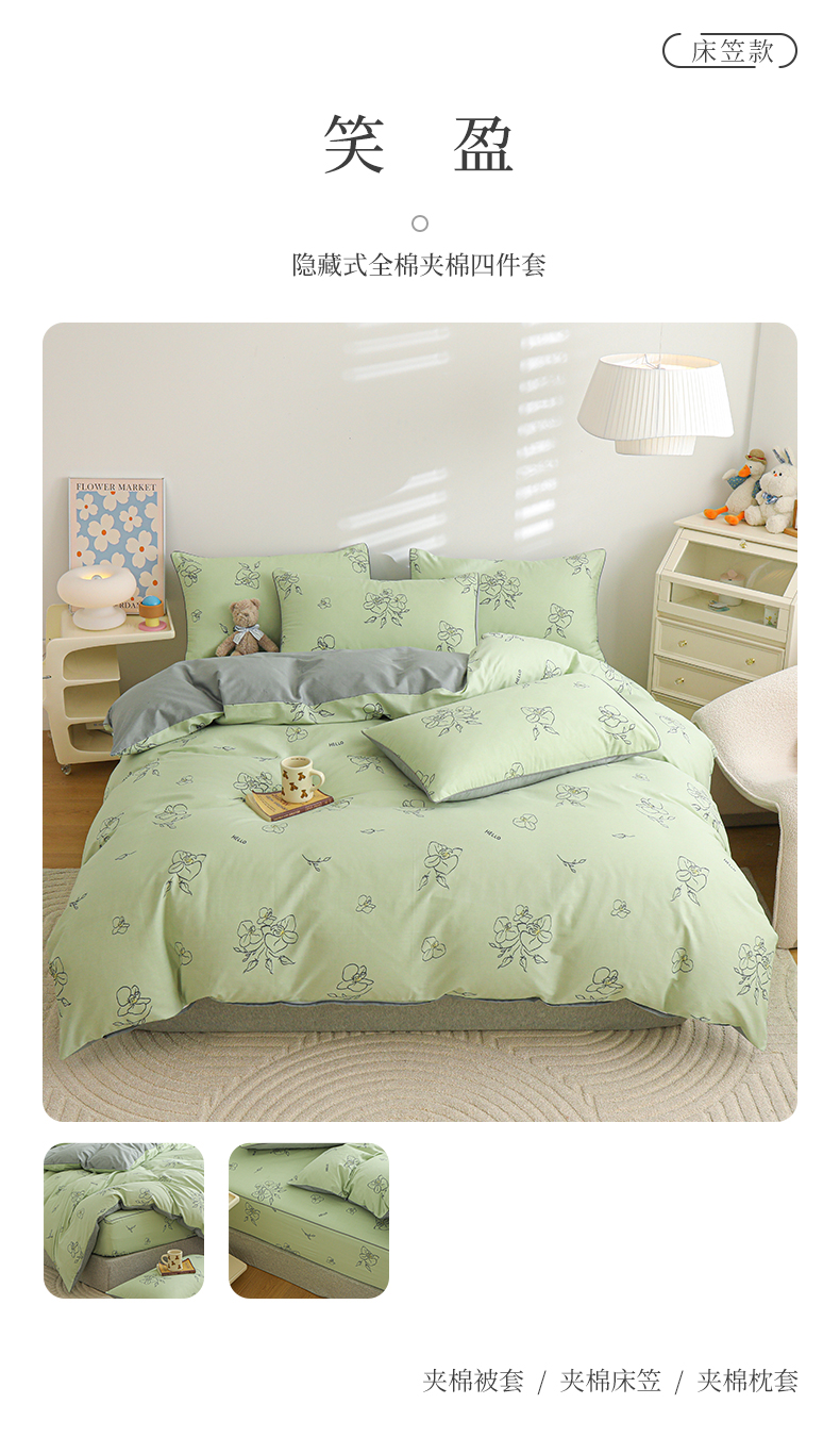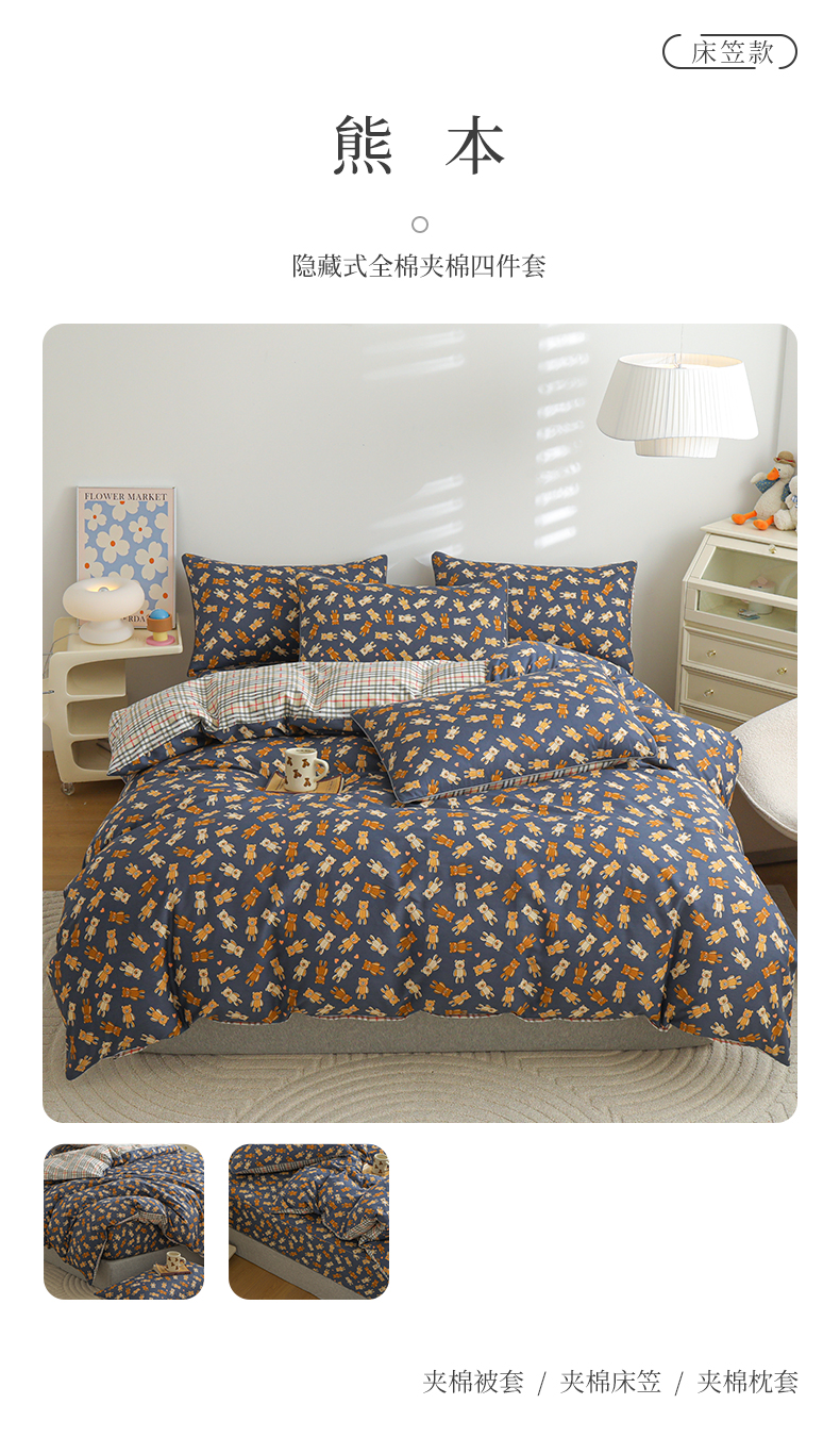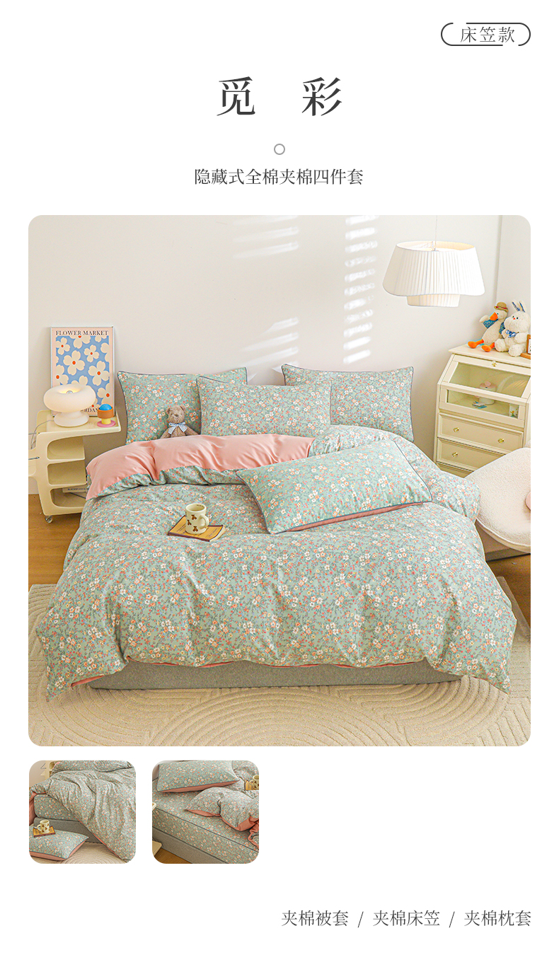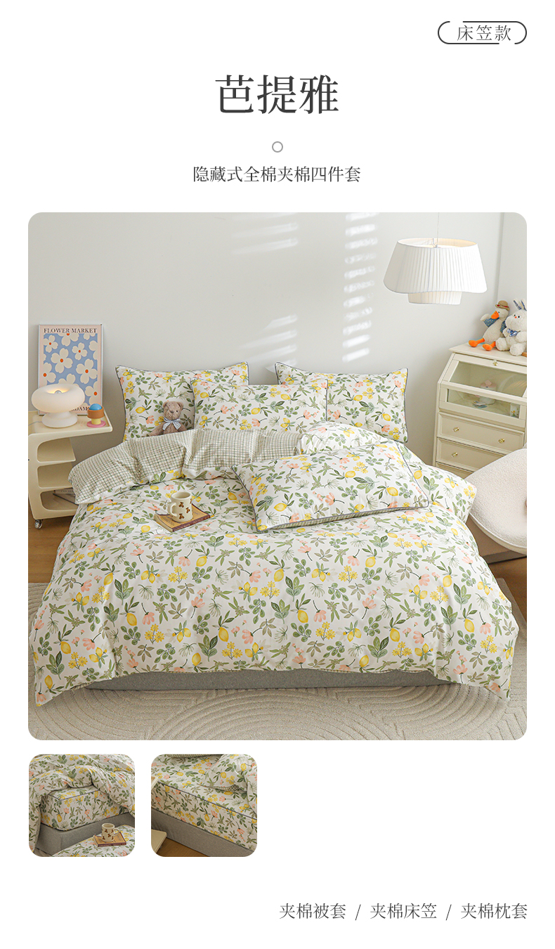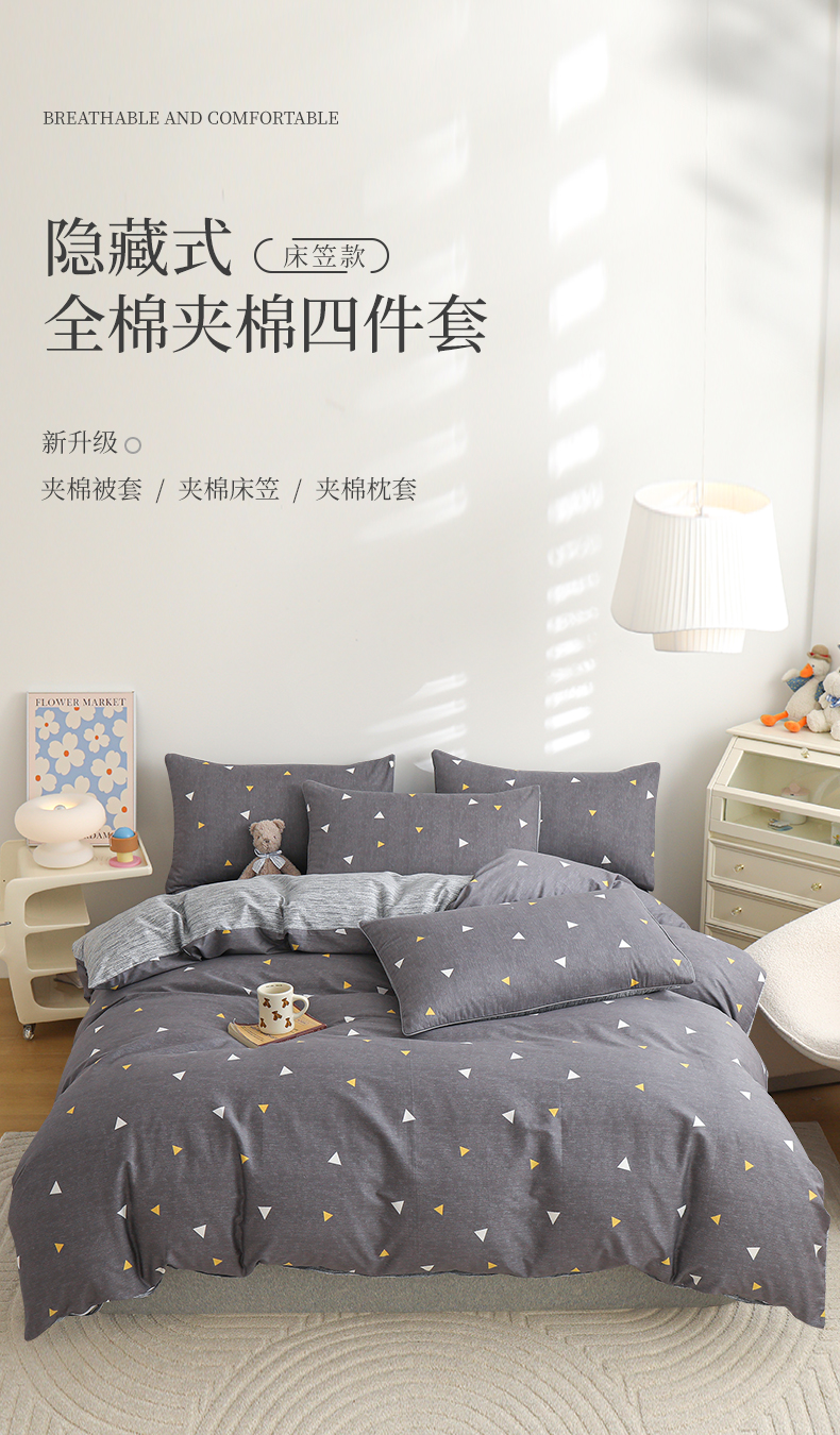 产品分类:隐藏式全棉夹棉四件套床笠款