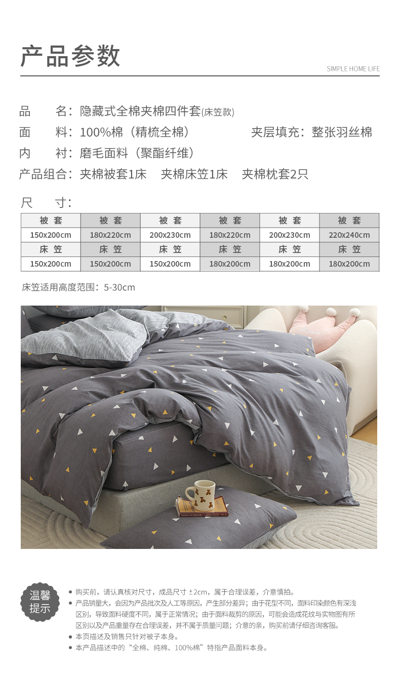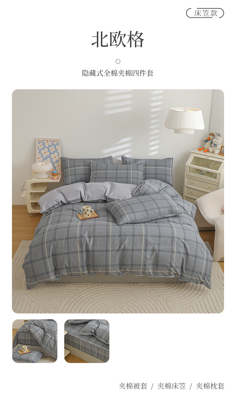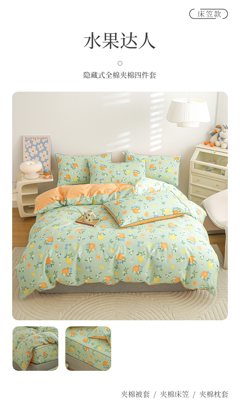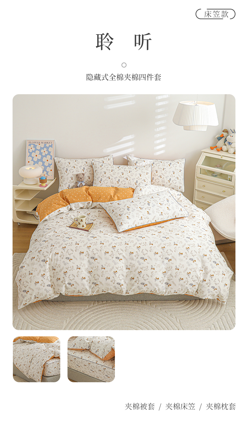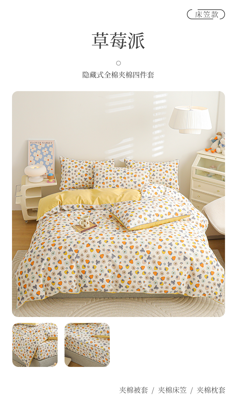 产品分类:隐藏式全棉夹棉四件套床笠款