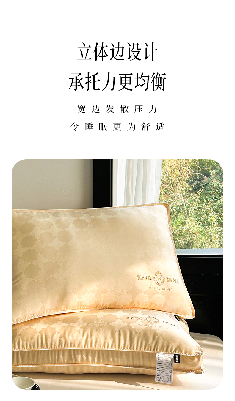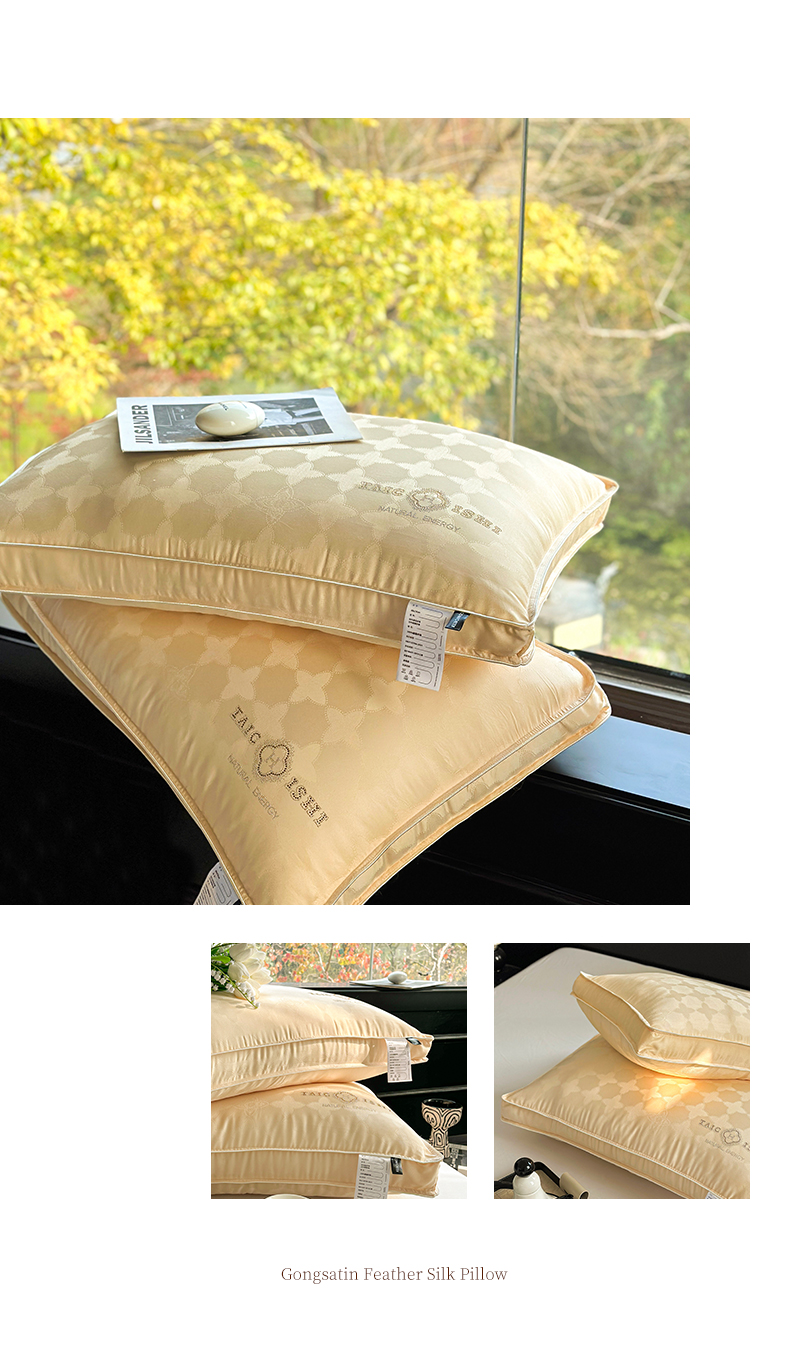 元元家居 60支天丝贡缎提花【超柔 贴肤 静音】羽丝枕 白色 金色