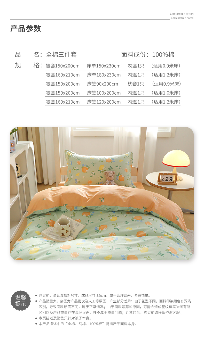 被套【不夹棉】150x200cm床单150x230cm枕套1只(适用0.8~1.0米床) 84 155