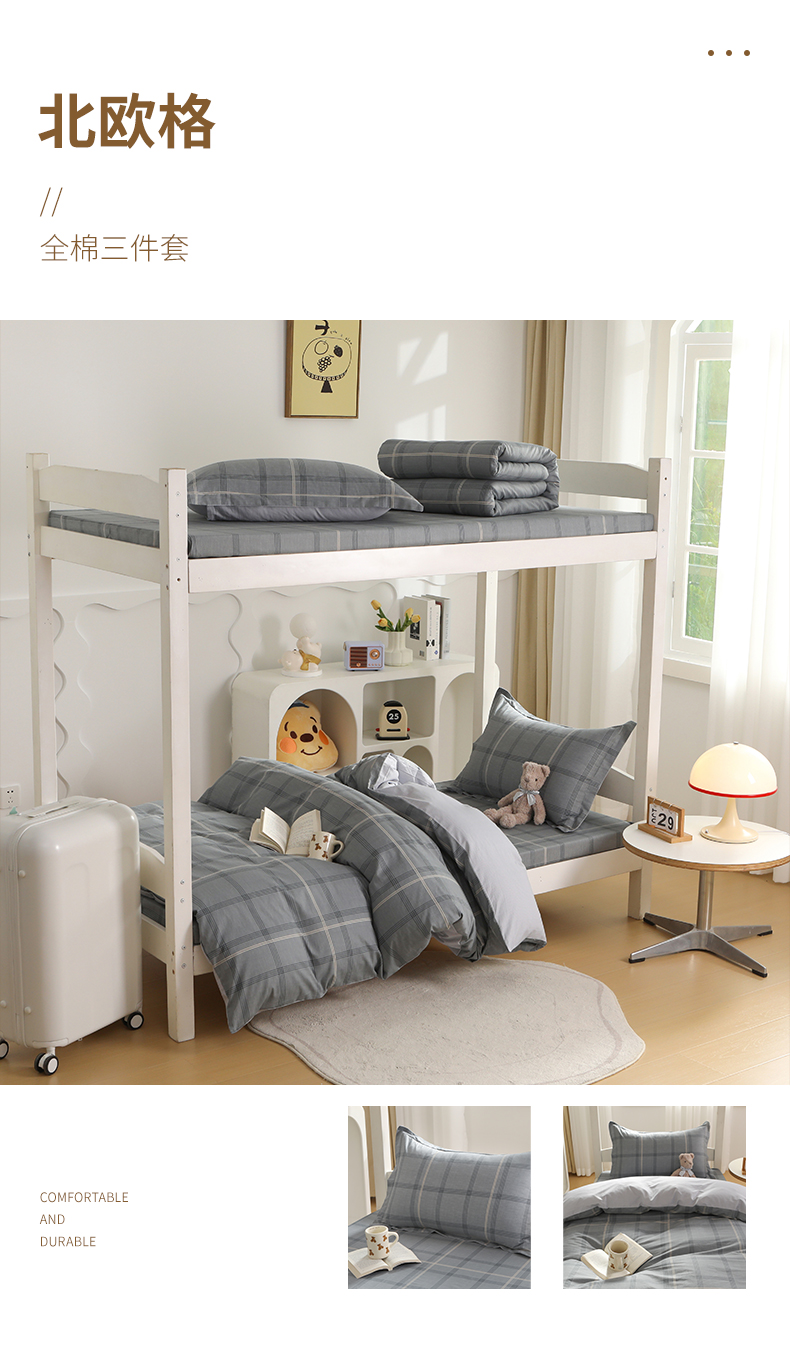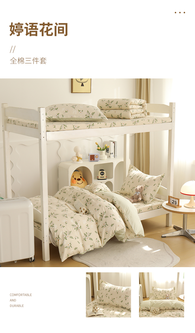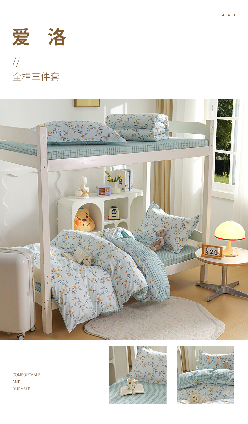 升级款夹棉被套150x200cm床笠90x200cm枕套1只 (仅用0.9米床) 114 195