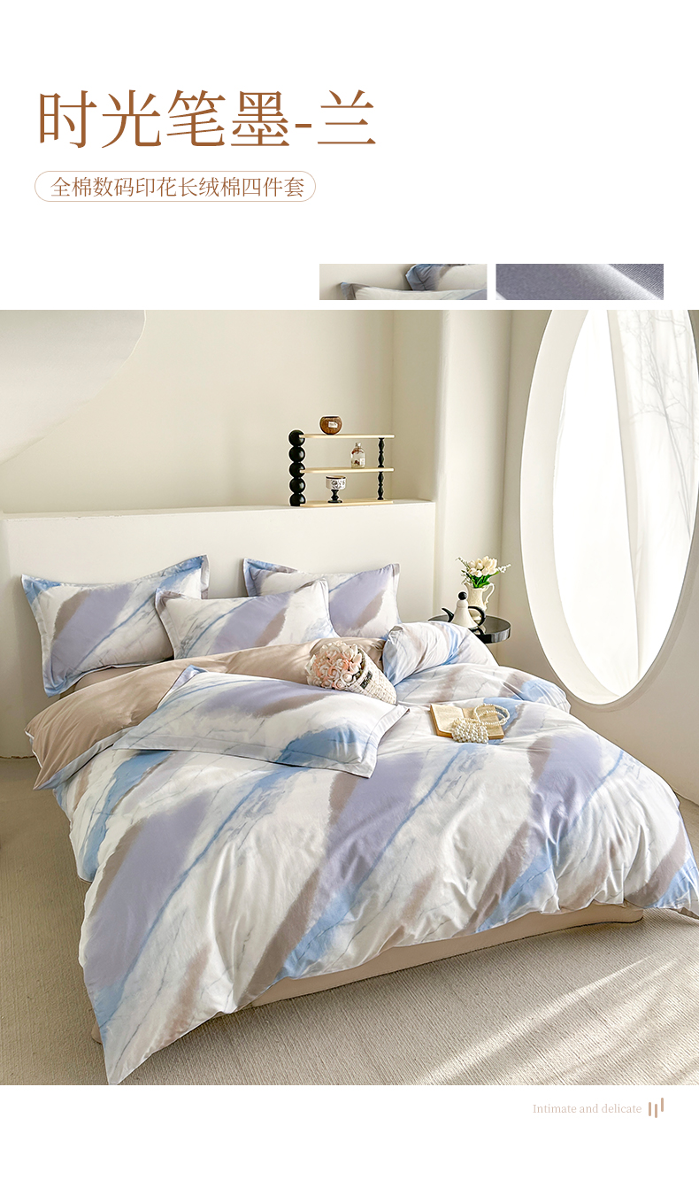 2024长绒棉数码印花四件套-时光笔墨-兰