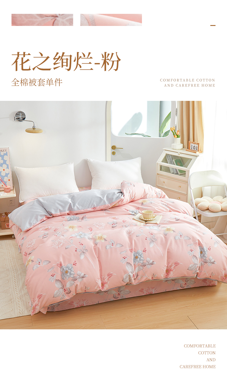 元元被业 全棉13372喷气印花 绣花 春秋被 冬被 子母被-蝶飞 粉色