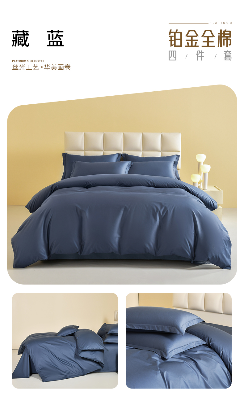 元元被业 元元被芯 元元家居 2025款铂金纯色全丝光-全精梳高密纺-全棉四件套-藏蓝