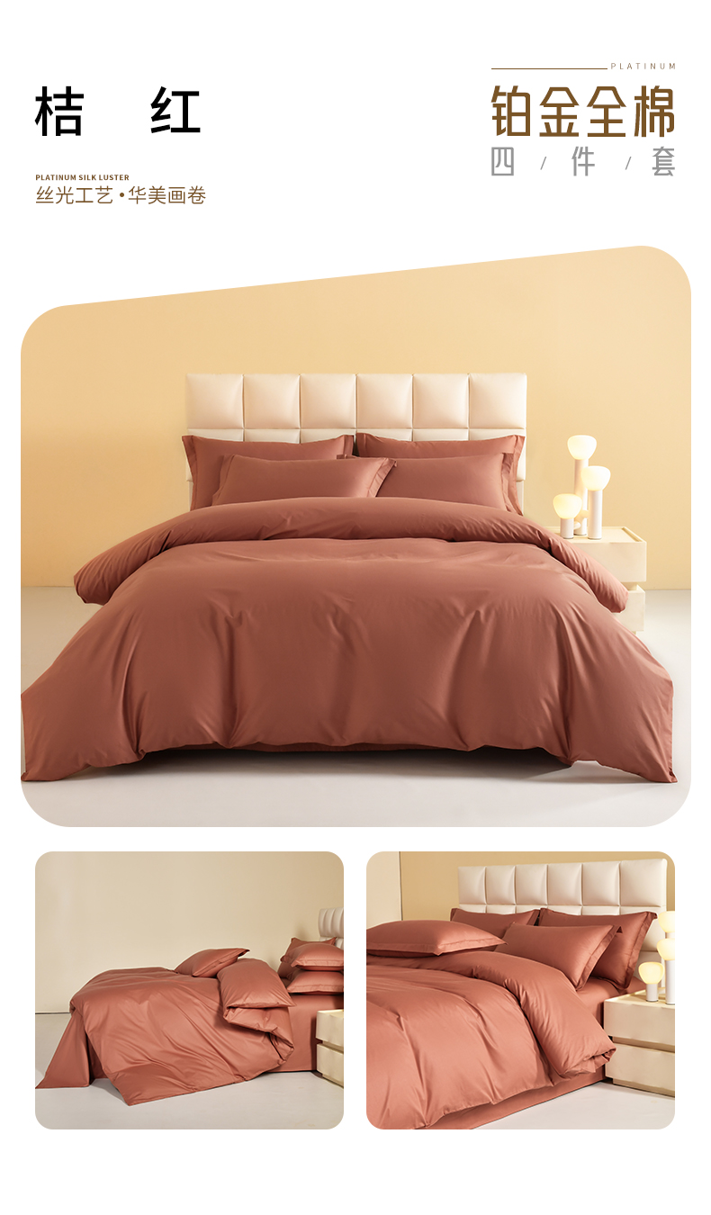 元元被业 元元被芯 元元家居 2025款铂金纯色全丝光-全精梳高密纺-全棉四件套-桔红