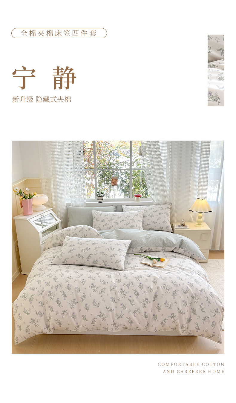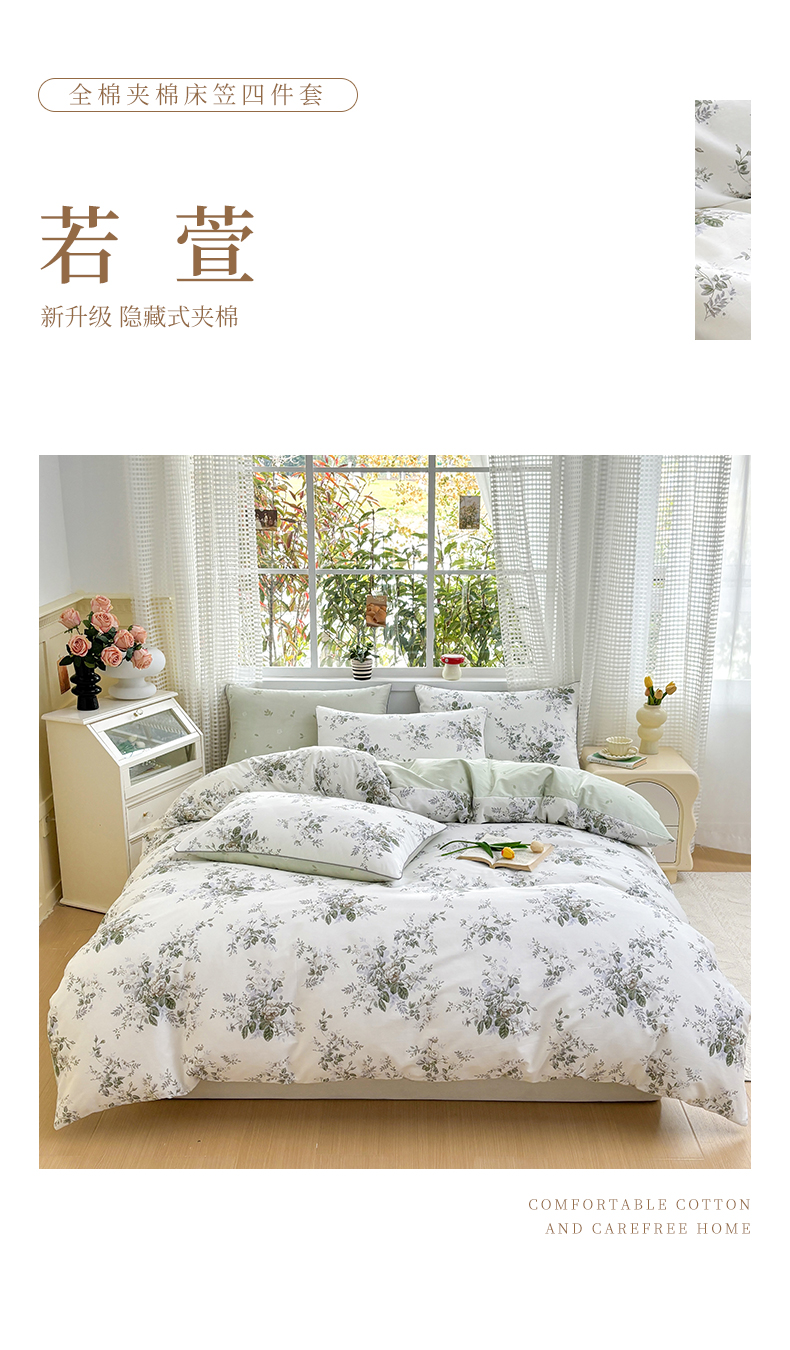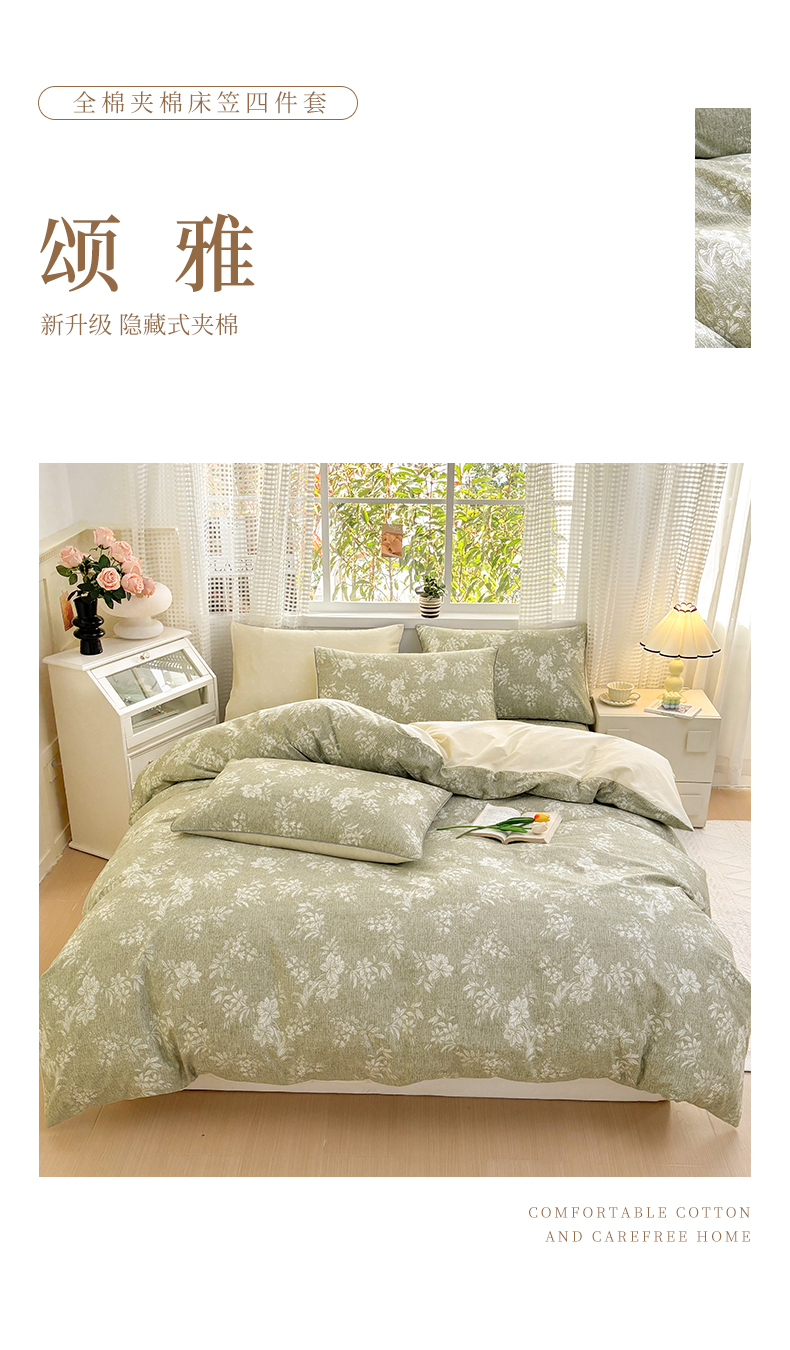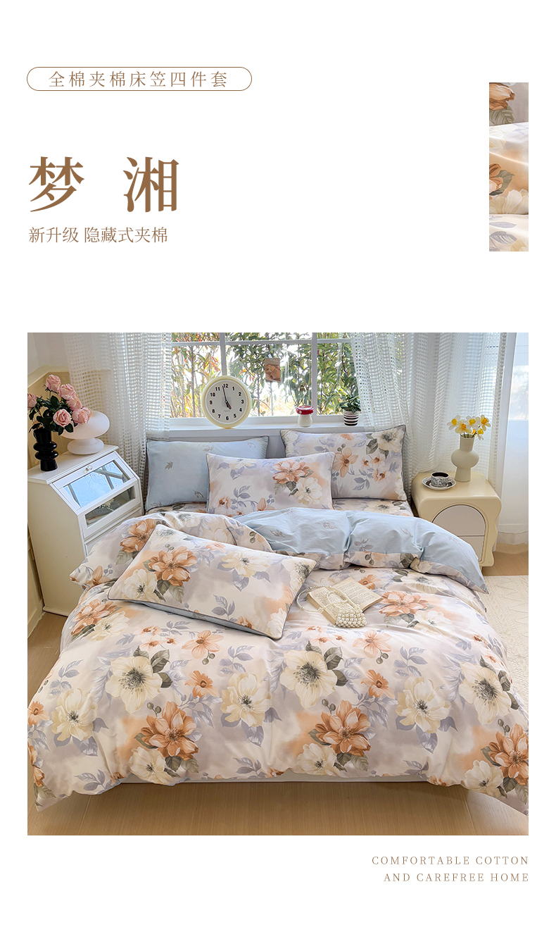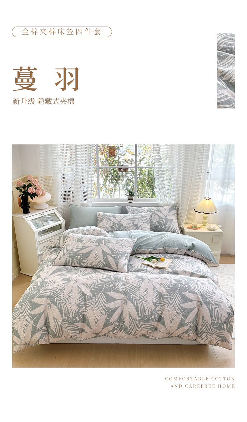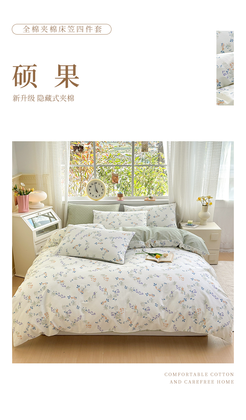 产品分类:2025款全棉印花夹棉床笠款四件套
