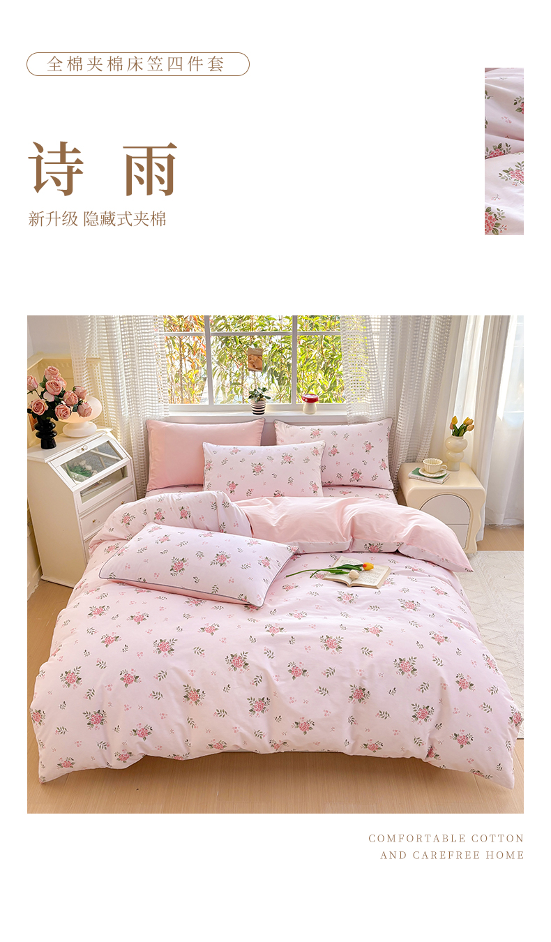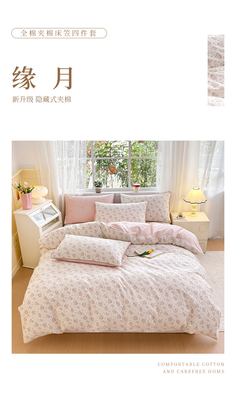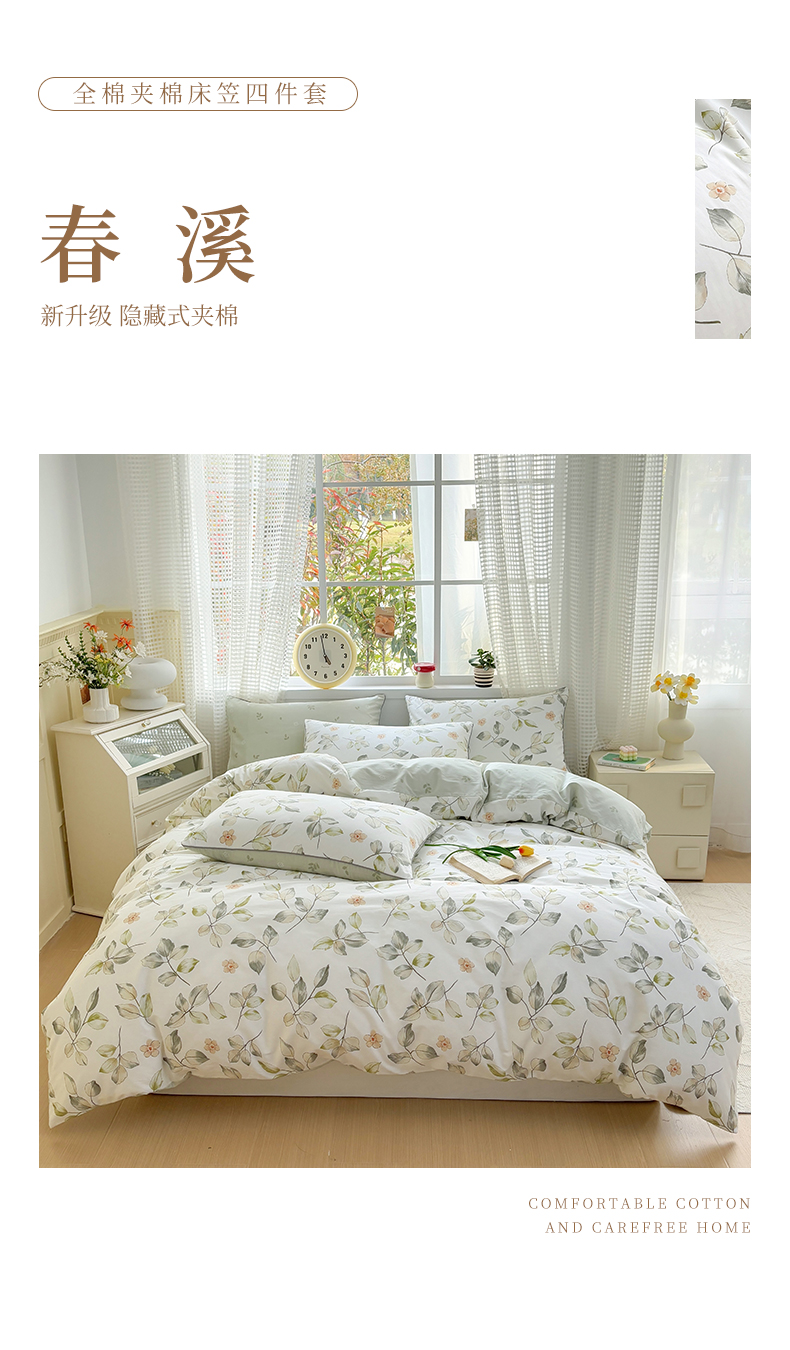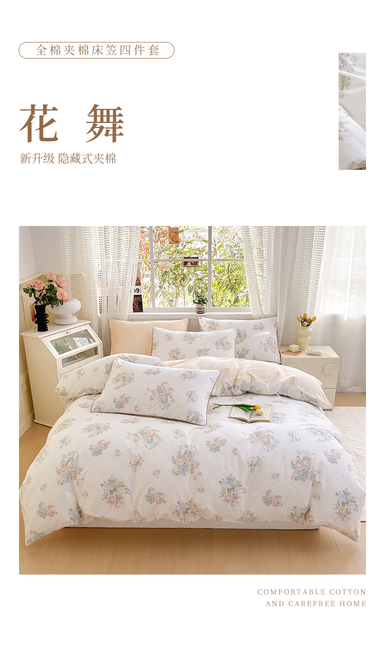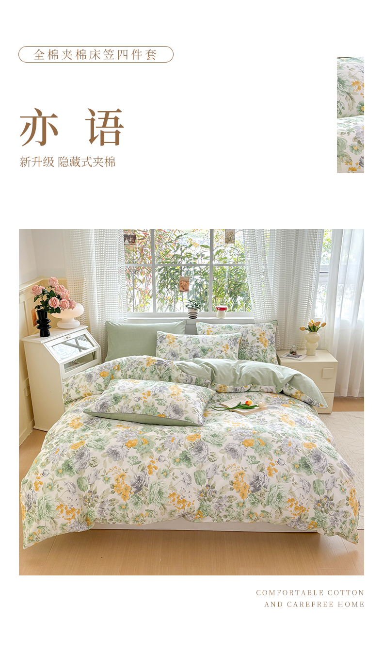 产品分类:2025款全棉印花夹棉床笠款四件套