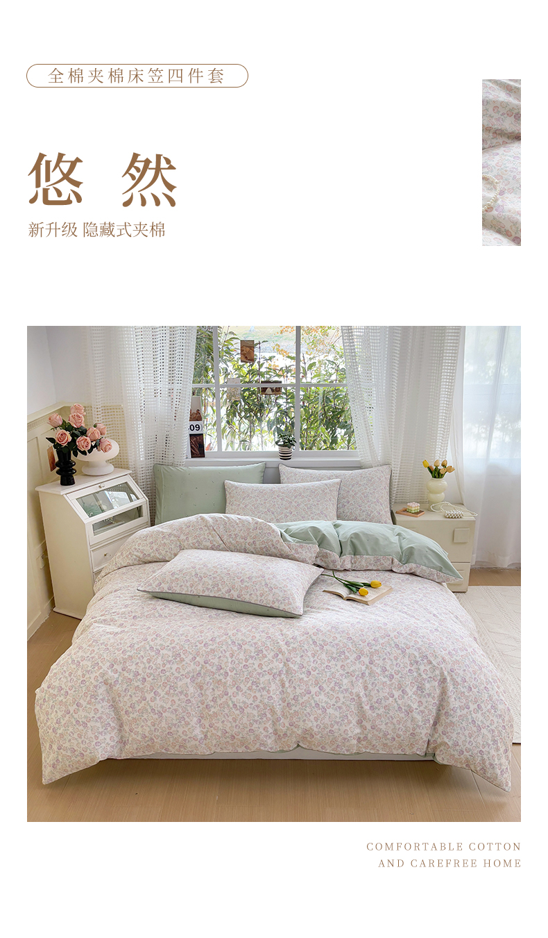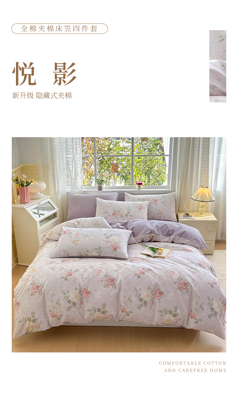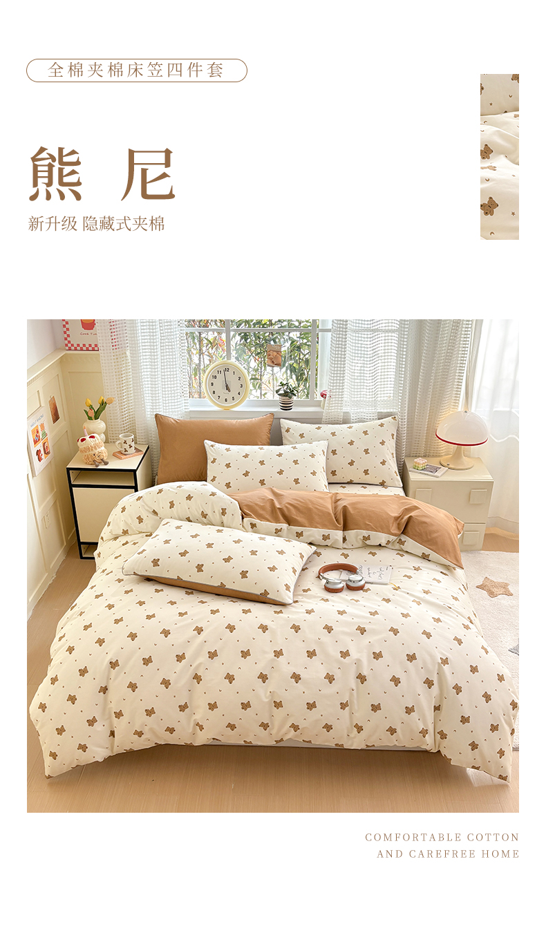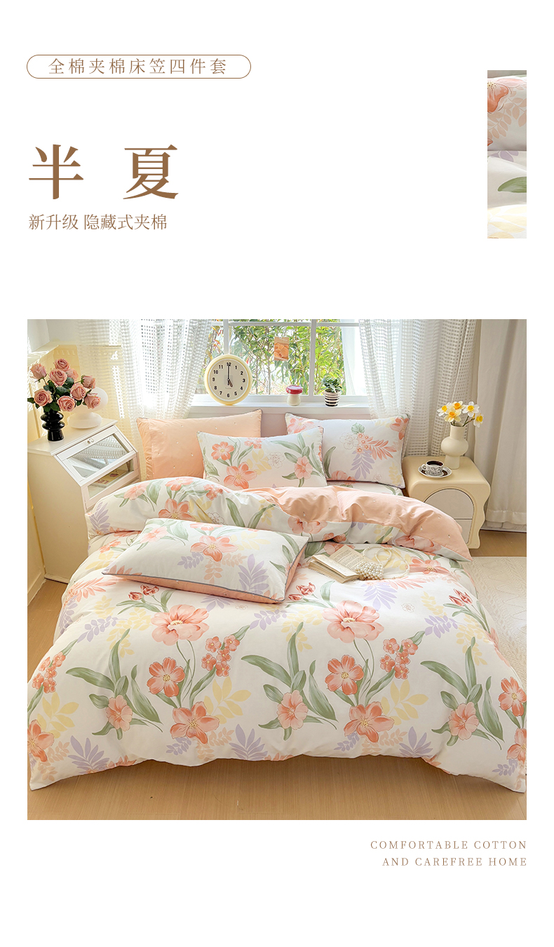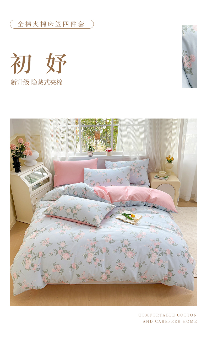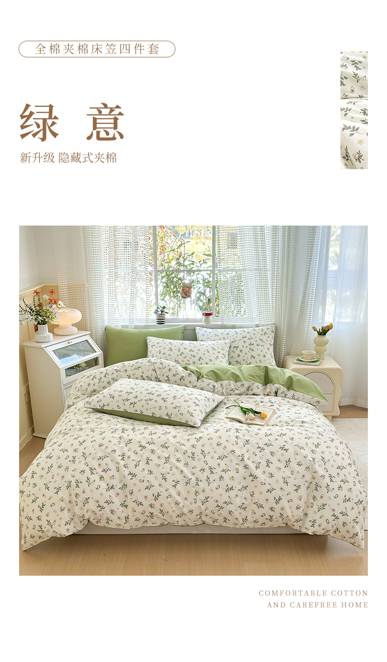 产品分类:2025款全棉印花夹棉床笠款四件套