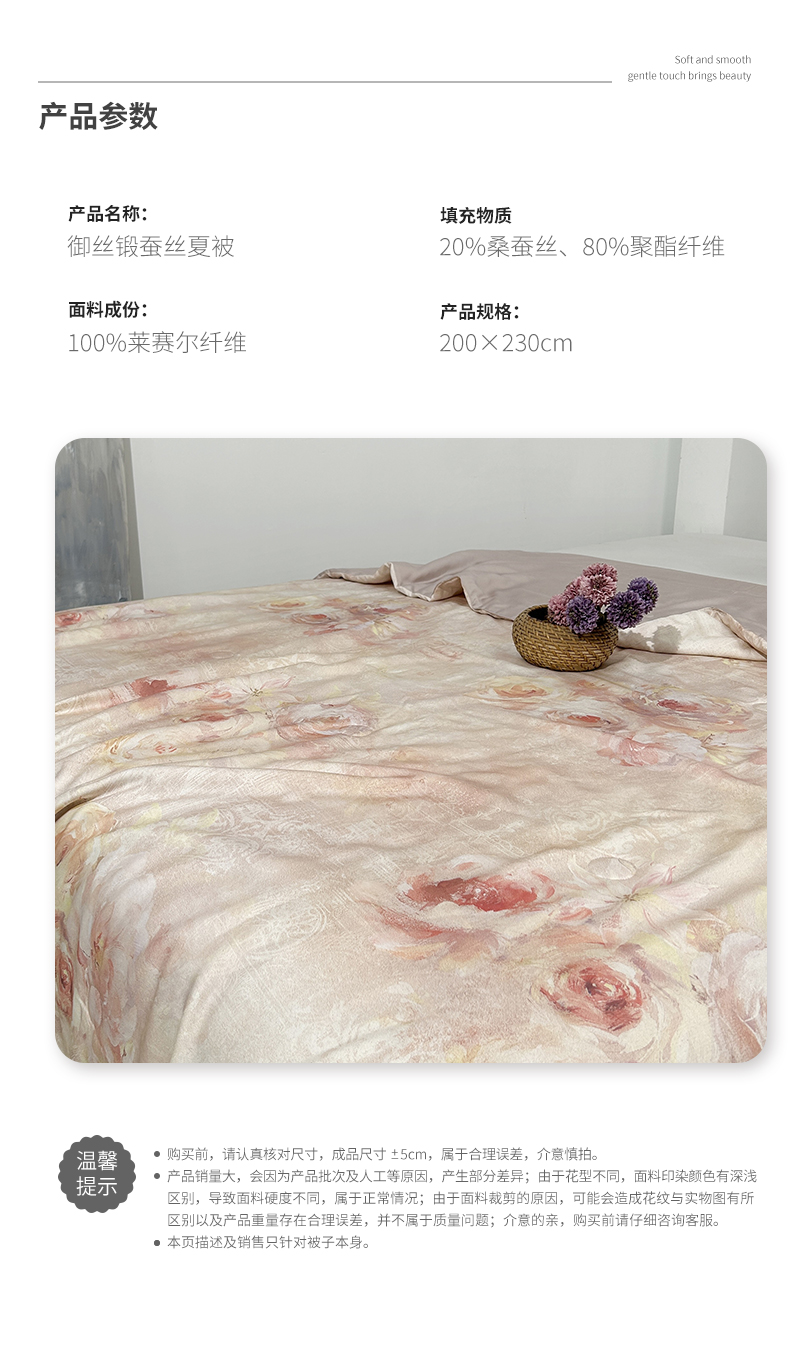 成份工艺:100%莱赛尔 填充 20%桑蚕丝