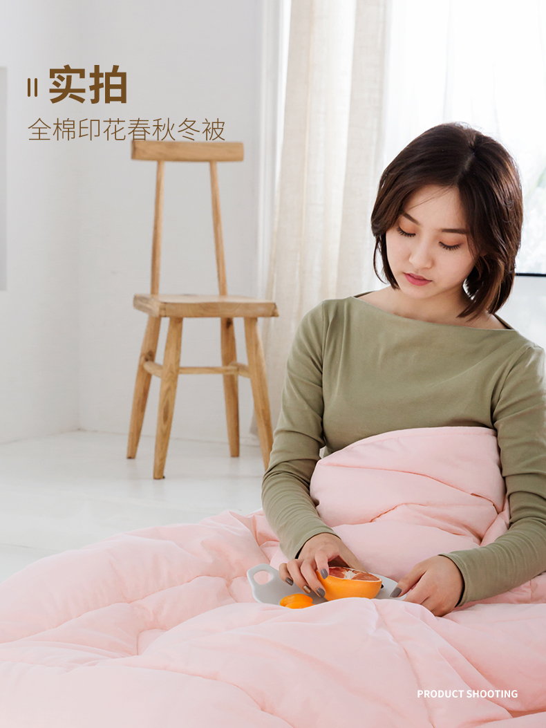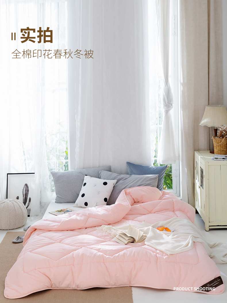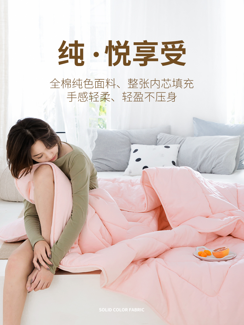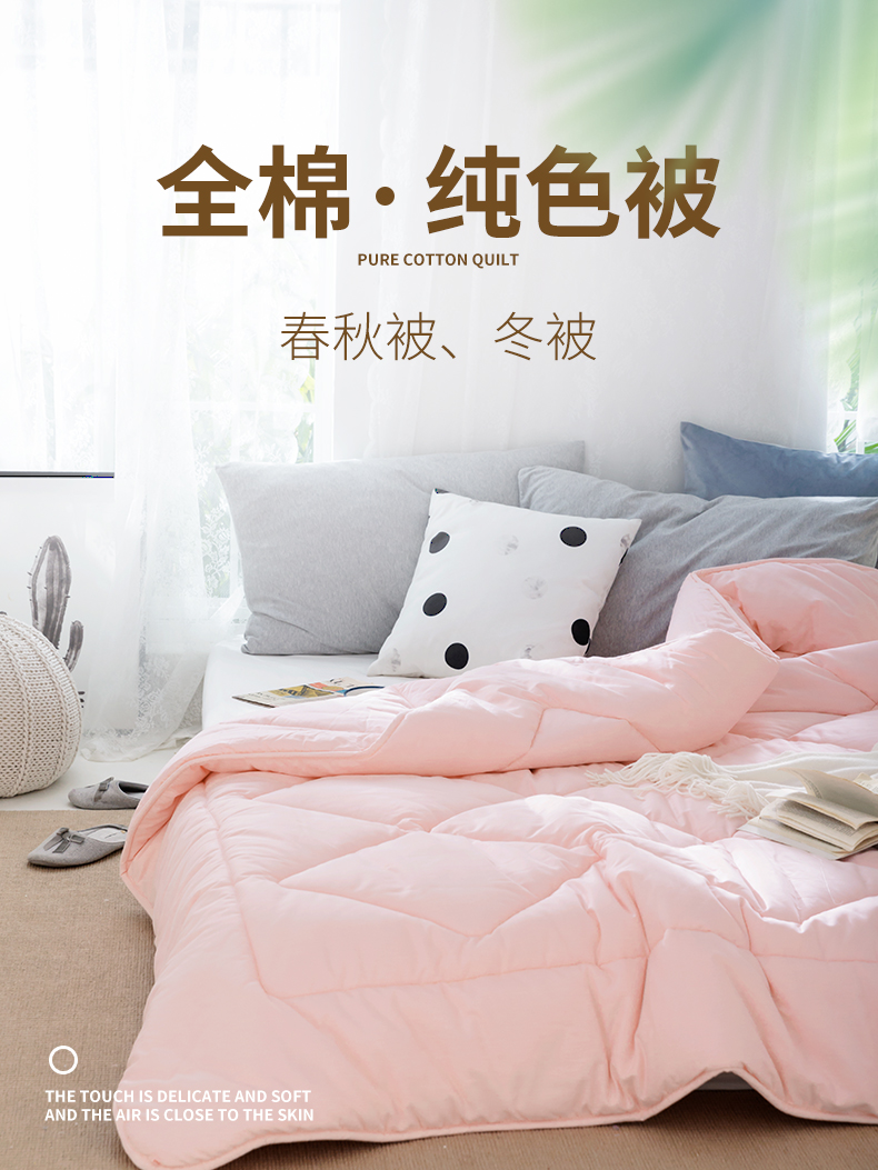 元元被业 全棉纯色春秋被 冬被 -粉玉色