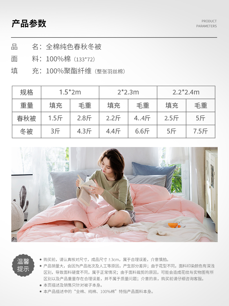 | 2.0*2.3m春秋被 | 2.2斤 | 4.4斤 | 95.00 | 春秋 |