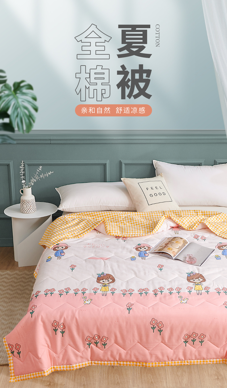 元元被业 2023款 全棉印花夏被 纯棉夏凉被 单人双人全棉空调被-花田女孩