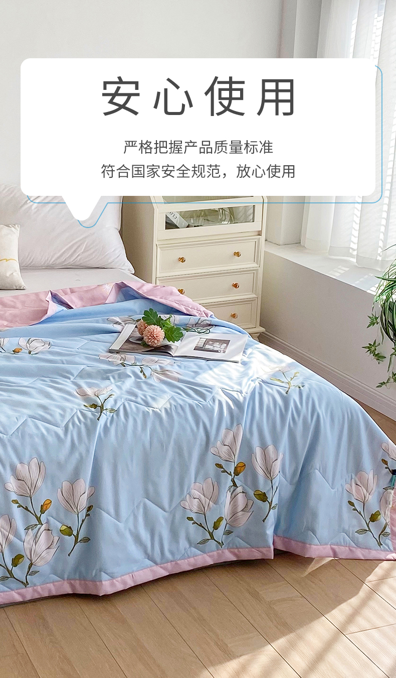 元元被业 2025款 磨毛印花夏被 单双人空调被 促销爆款夏凉被-玉兰-蓝色