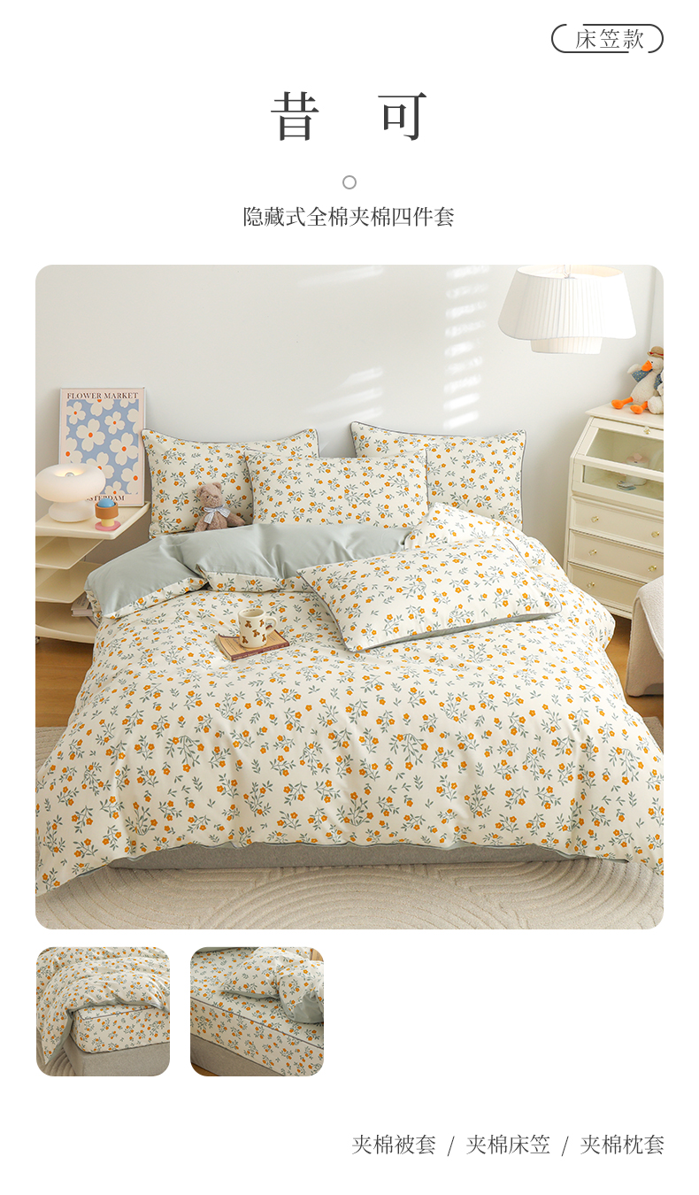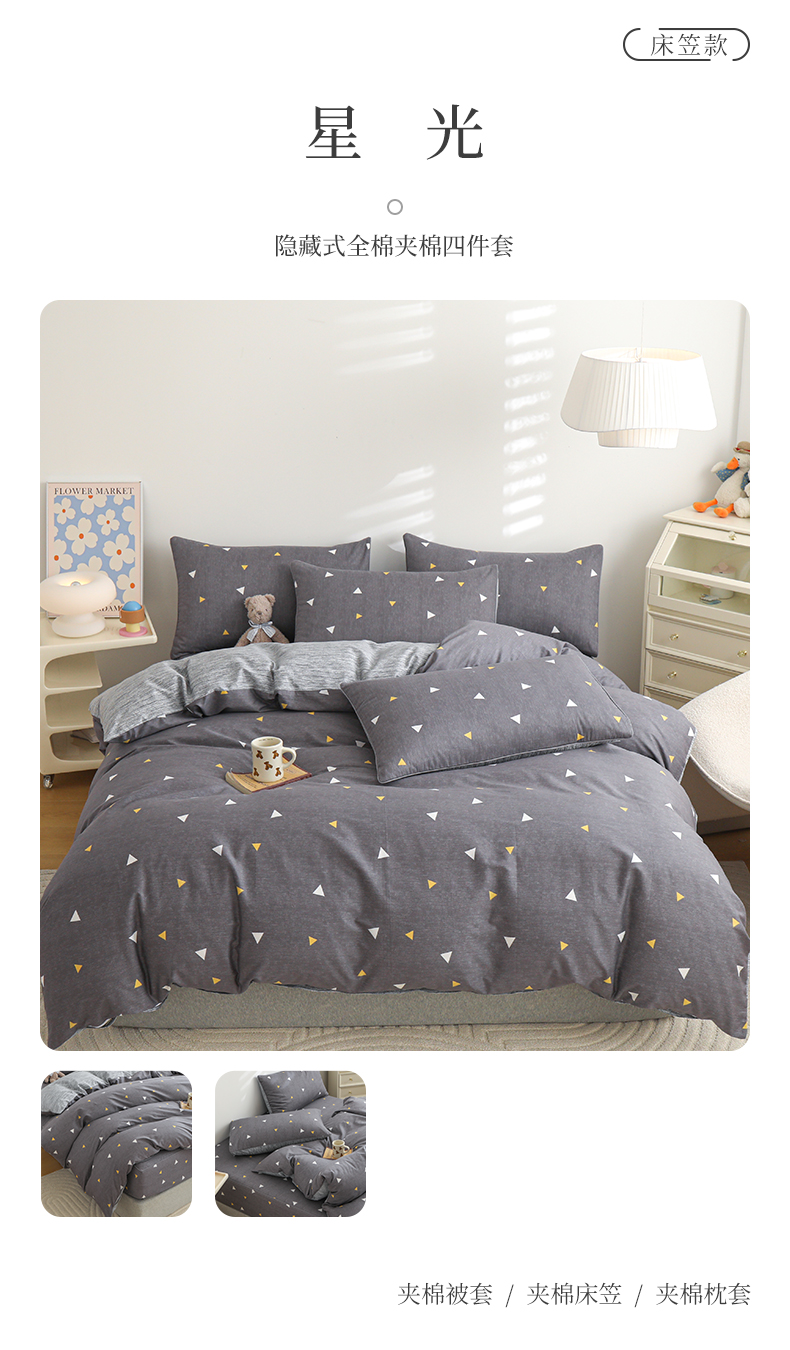 产品分类:隐藏式全棉夹棉四件套床笠款