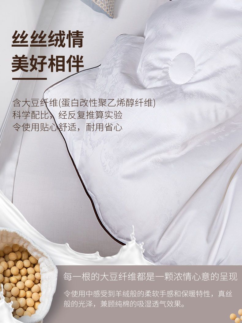 元元被业 全棉60支贡缎大提花 20%大豆纤维被-白色