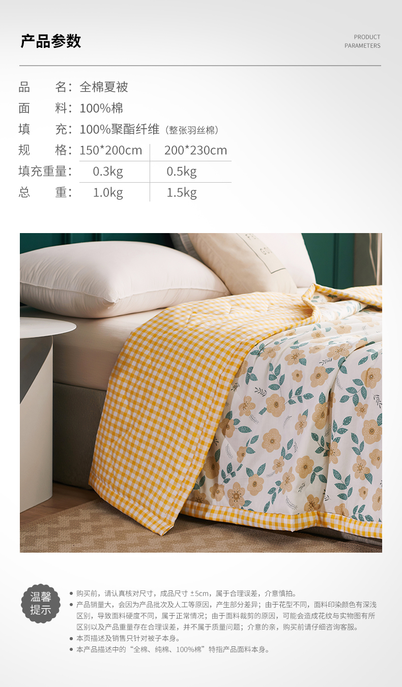 元元被业 2023款 全棉印花夏被 纯棉夏凉被 单人双人全棉空调被-初 夏